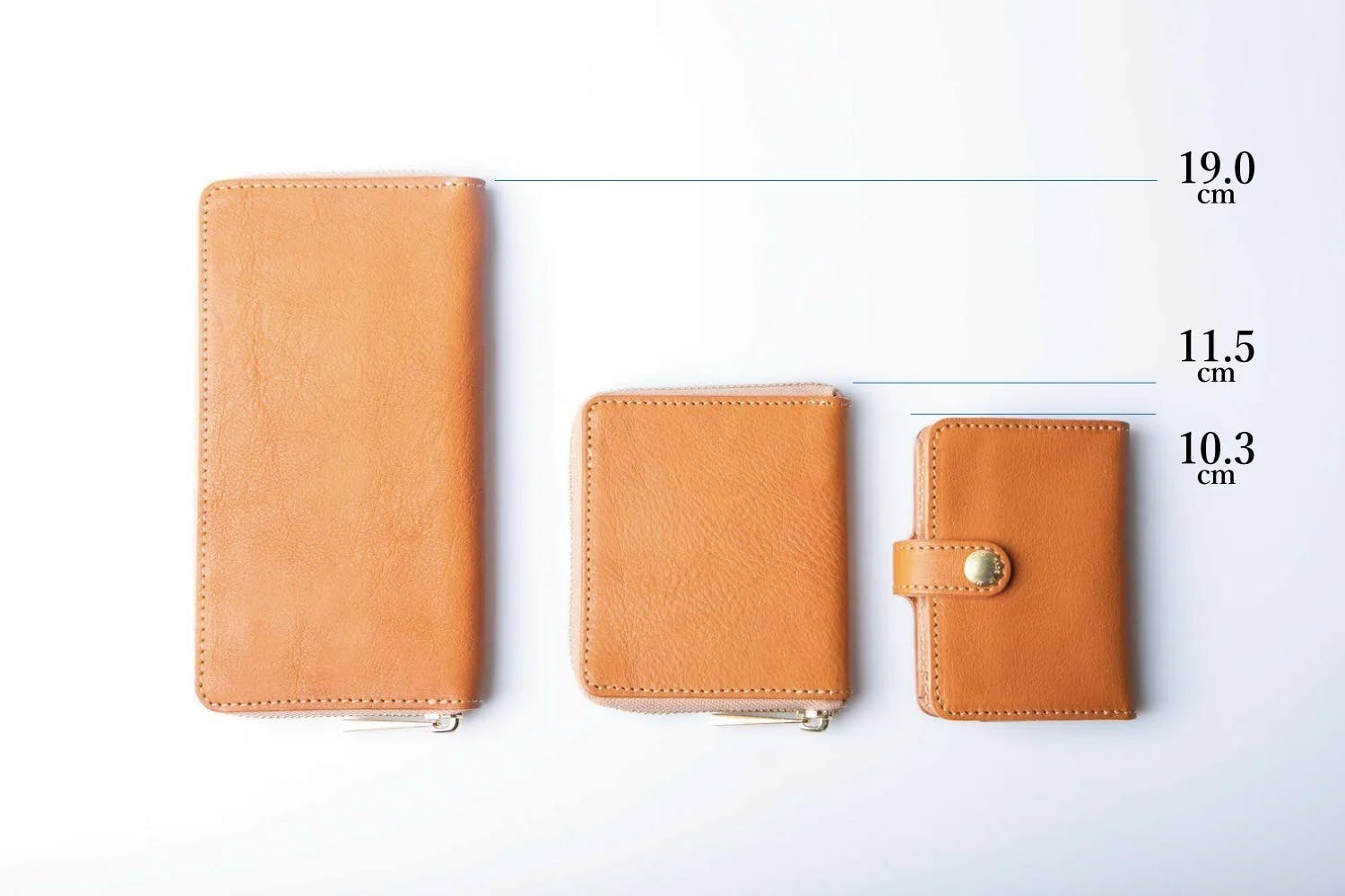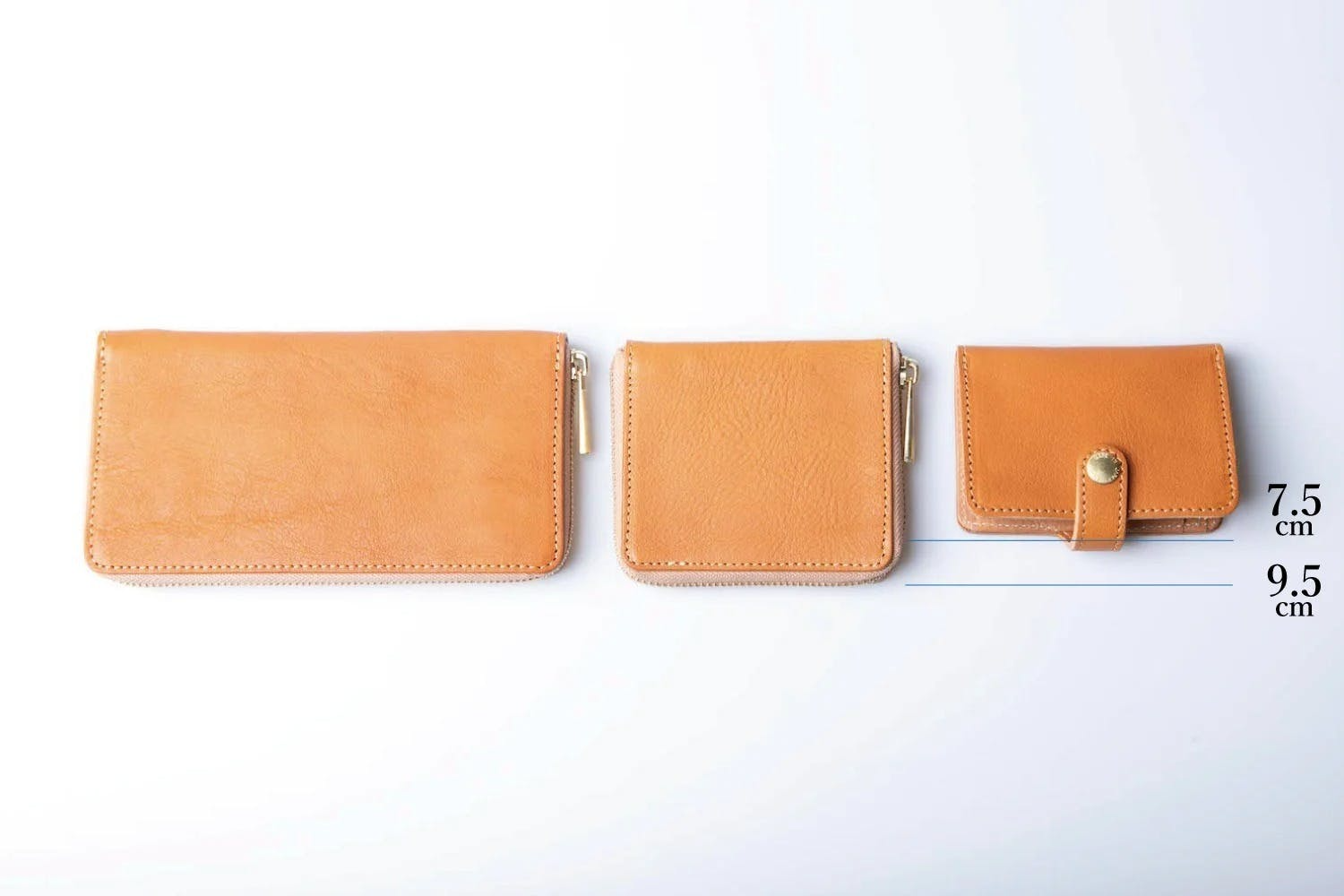 一般的な長財布、ファスナー型のコンパクト財布とのサイズ比較です。