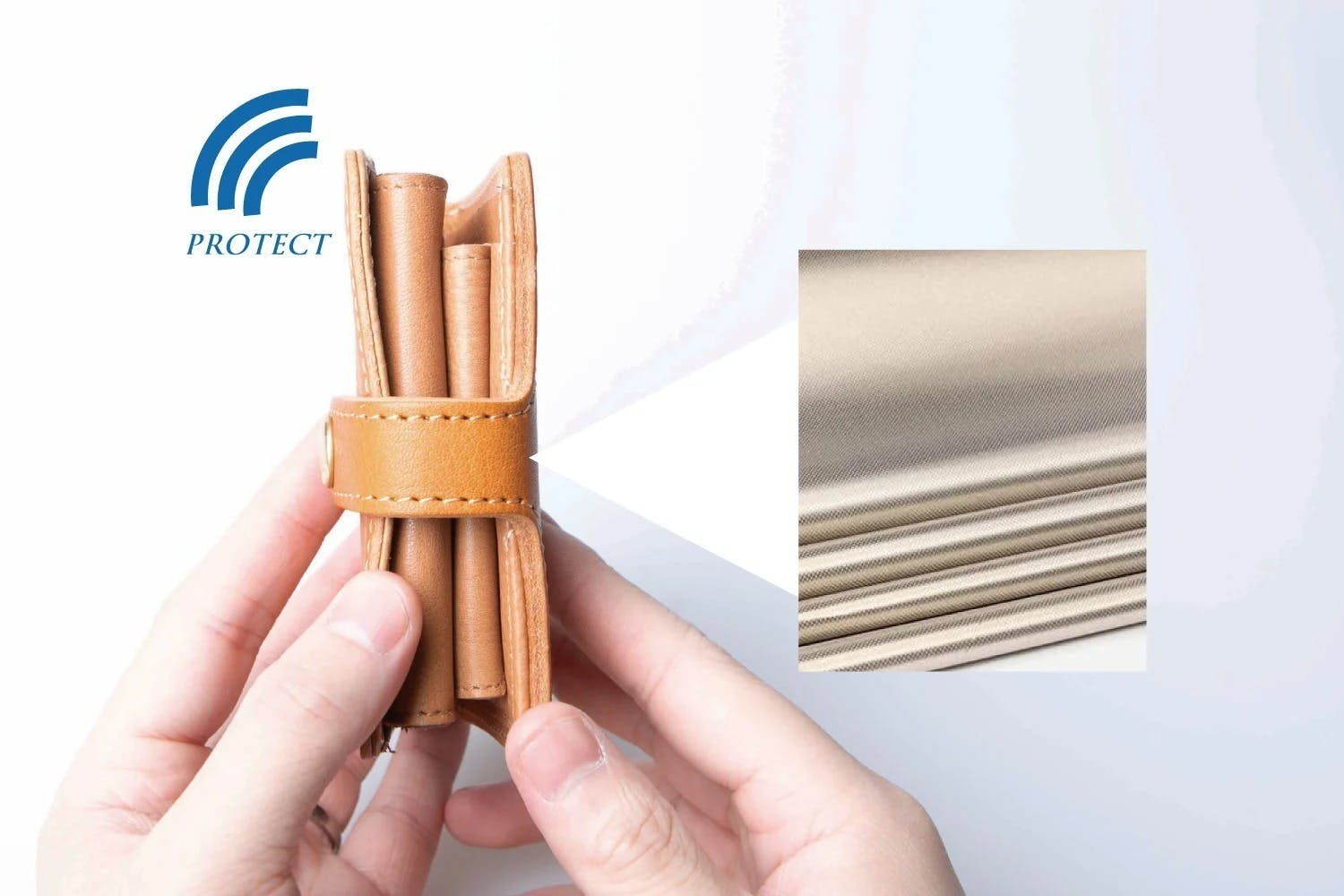 そこで財布の内側の見えない部分に「電磁波遮断シート」を搭載しました。