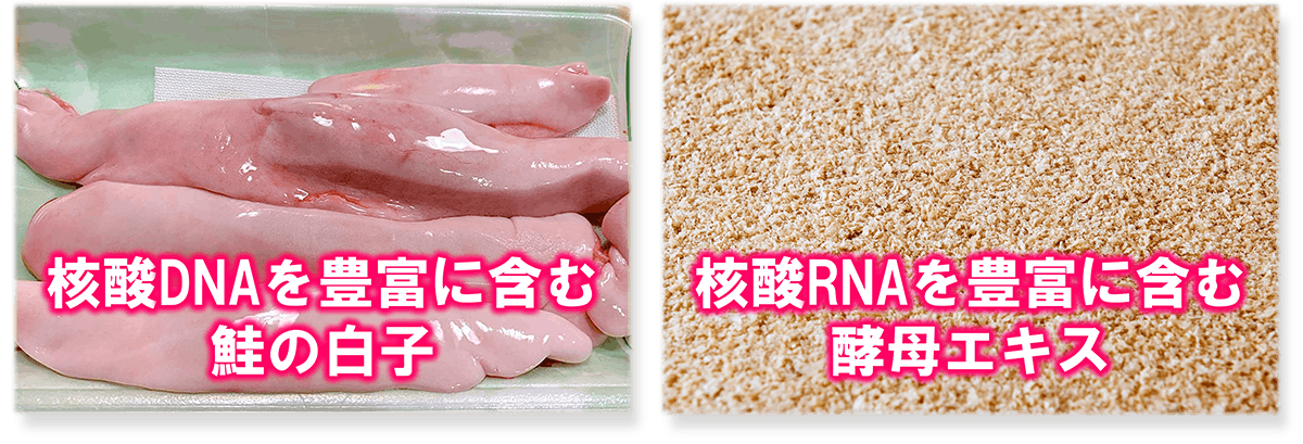 「クレバードッグ」に配合されている核酸には、DNAを豊富に含む「サケの白子エキス」とRNAを豊富に含む「RNAポリアミン酵母」が使われています。