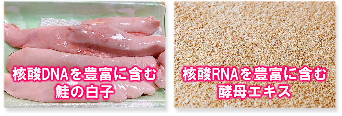「クレバードッグ」に配合されている核酸には、DNAを豊富に含む「サケの白子エキス」とRNAを豊富に含む「RNAポリアミン酵母」が使われています。