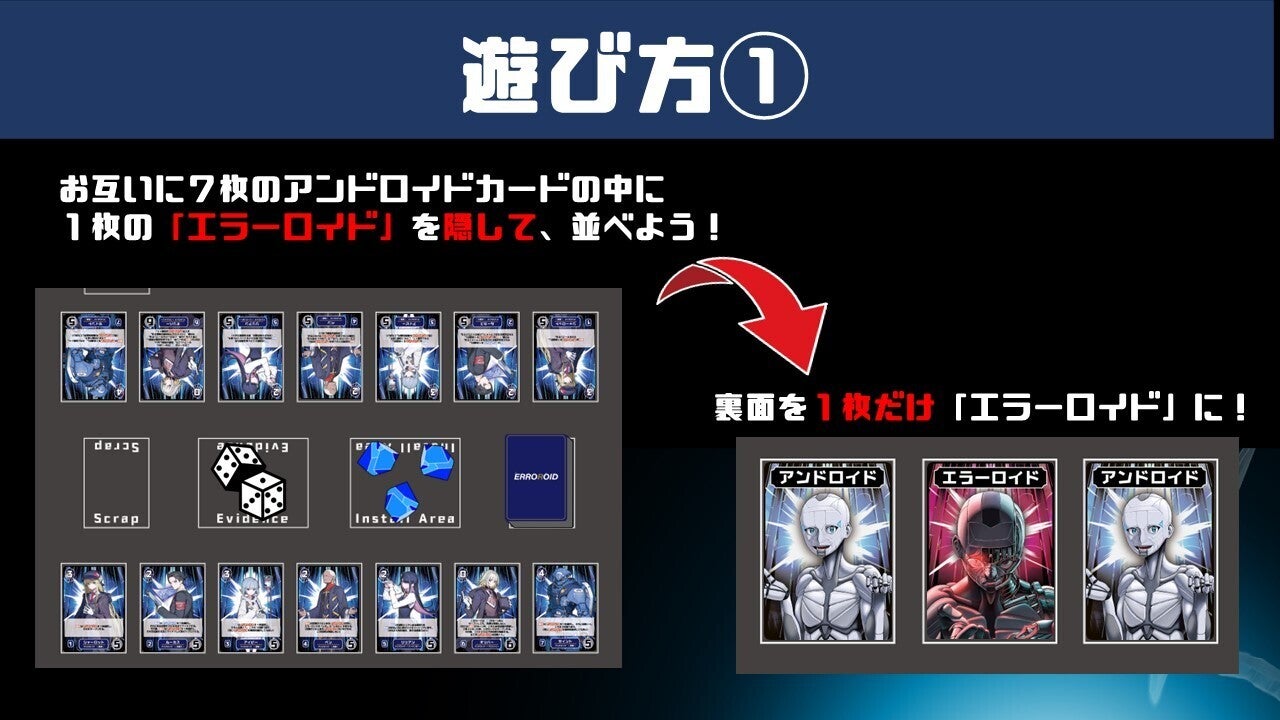 カード効果を駆使し、お互いが隠した「エラーロイド」を探し当て、正体を暴いていく、