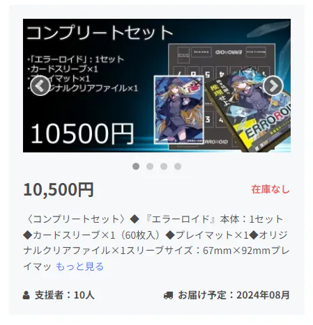 〈ゲーム本体+プレイマットセット〉と〈カードスリーブコース〉を同時にご支援いただければ、500円多くご支援いただくことになりますが、