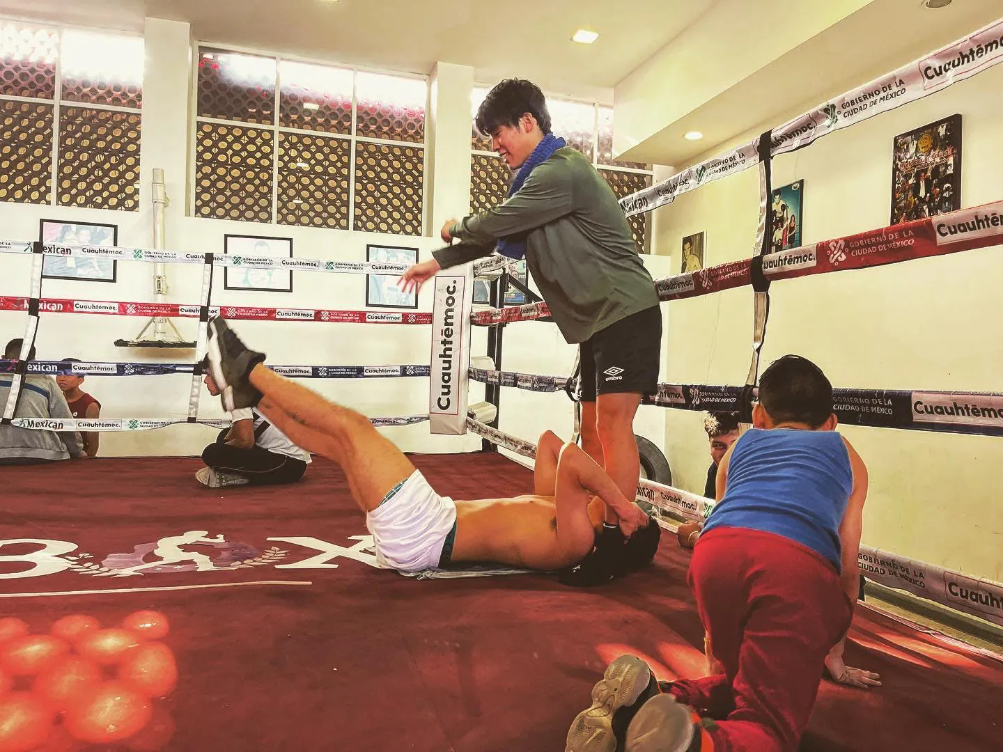 (真ん中が投稿者。メキシコはその世界では広く知られたボクシング大国、今回発信するのはボクシングと共に贈る国際プロジェクトになります。)