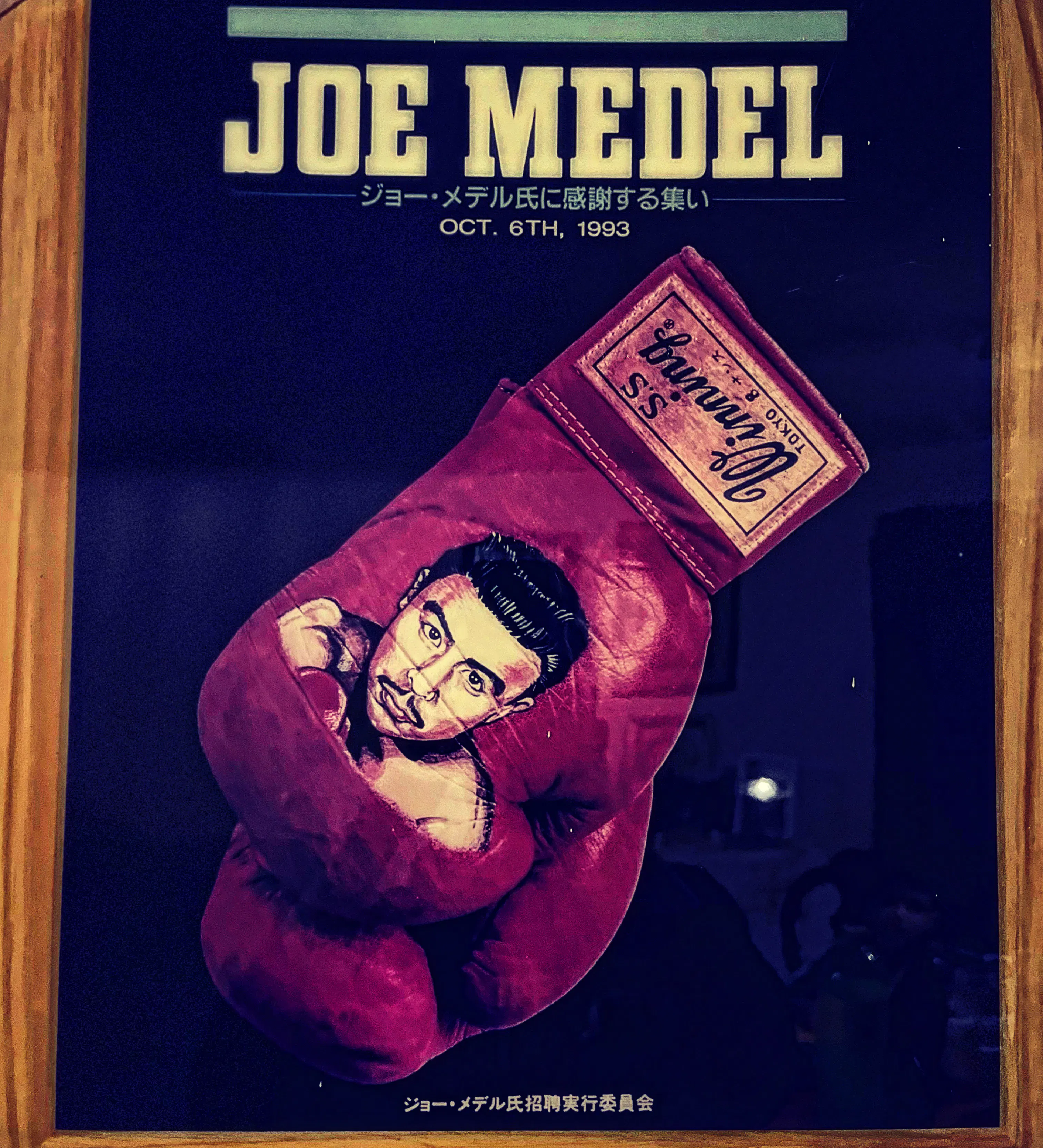 先ほど紹介した伝説の試合時に製作されたこのポスターはなんとジョー・メデル氏ご本人が保管されていたもの!ご本人が亡くなった今でもご家族が大切に保管されています。