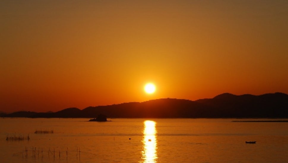 最上階の青雲(702号室)から見る、瀬戸内の海に沈む夕陽は絶景です。