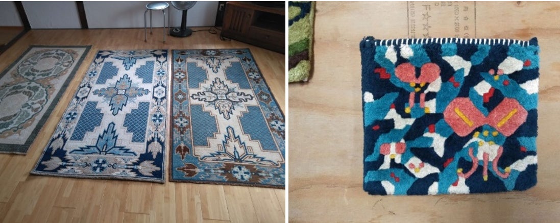 伝統工芸としての緞通「古緞通」をお部屋で触れて体感して頂くと同時に、緞通の世界に新しい感性を表現しようとしている若い作家さん廣津まゆさんの作品を飾らさせて頂きます。廣津さんはイラストを描く傍ら緞通に魅せられ九州から赤穂に来られ独特の緞通を作っています。