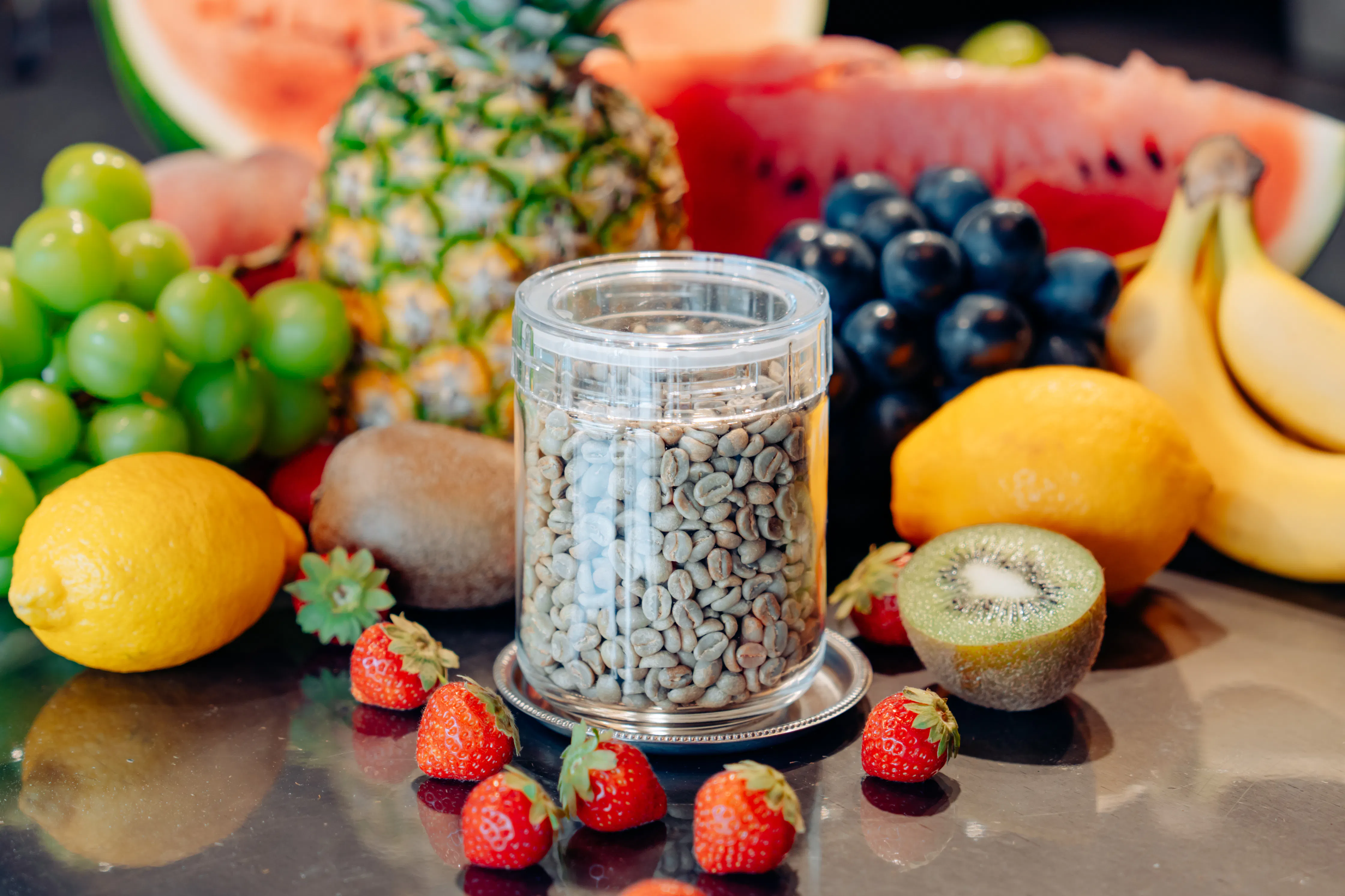 フルーツやお酒など厳選した素材を焙煎前の生豆に漬け込み、味と香りを溶け込ませることで新感覚のコーヒーができあがりました。