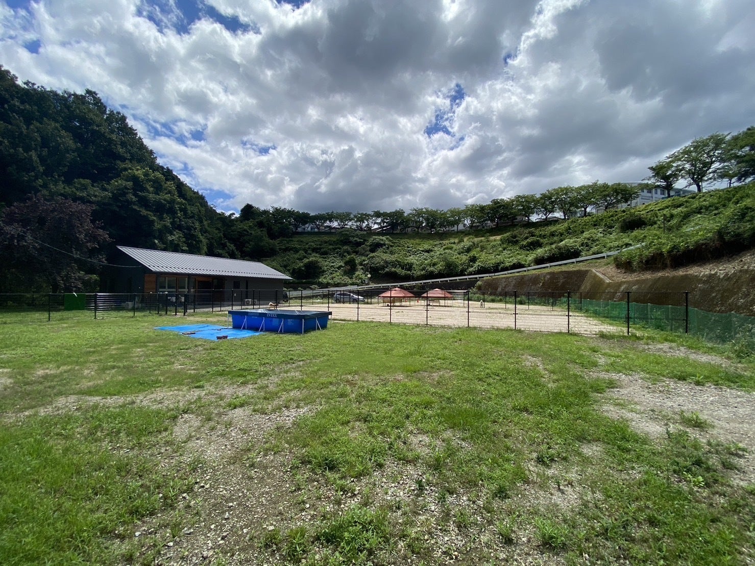 4面あるドッグランの一部がフェンスを設置できていない