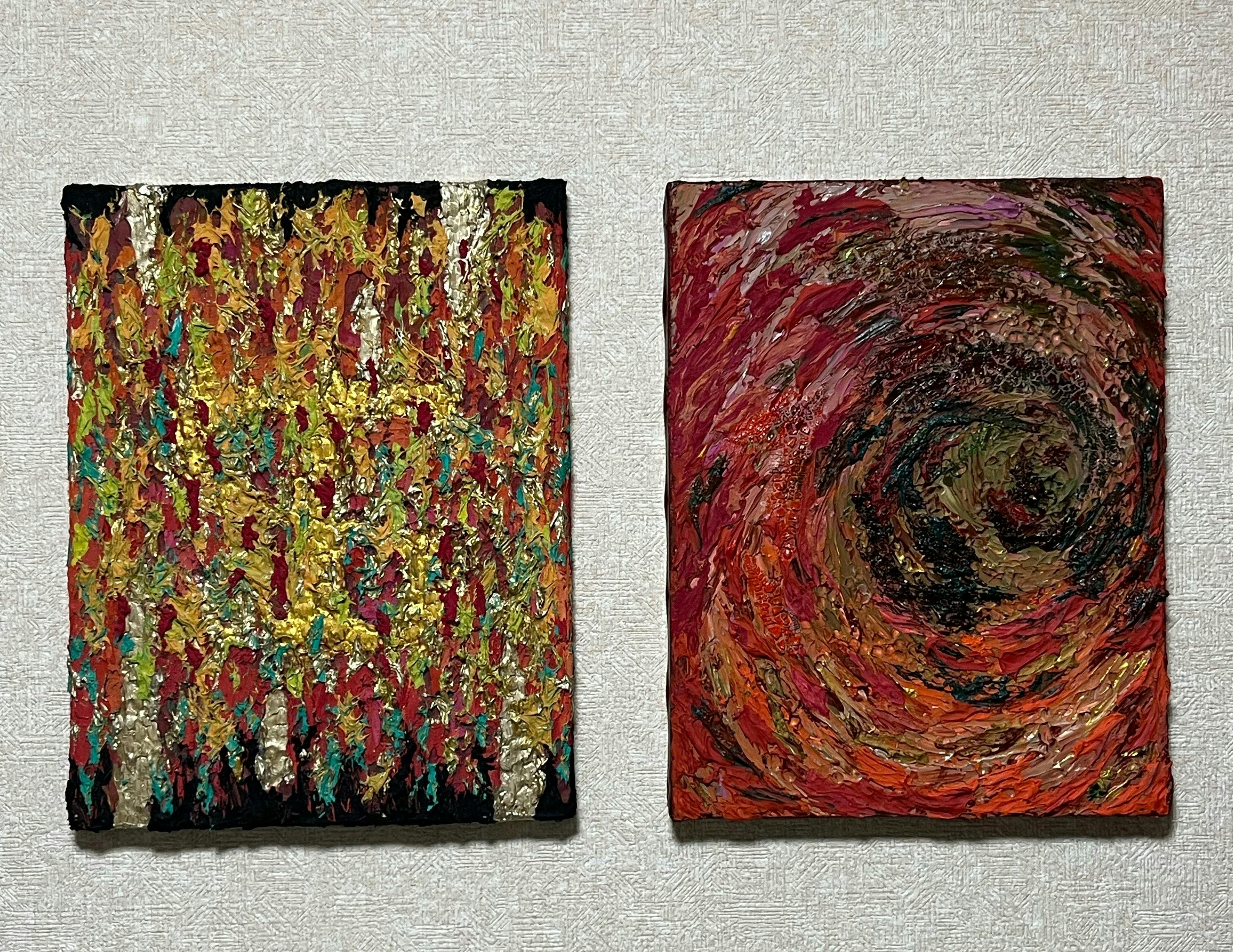過去の経験をイメージしたものを主にアクリル絵の具やモデリングペースト、ジェルメディウムを使用して表現しています。最近は和紙やキッチンペーパーを取り入れてアートの可能性を模索中です。