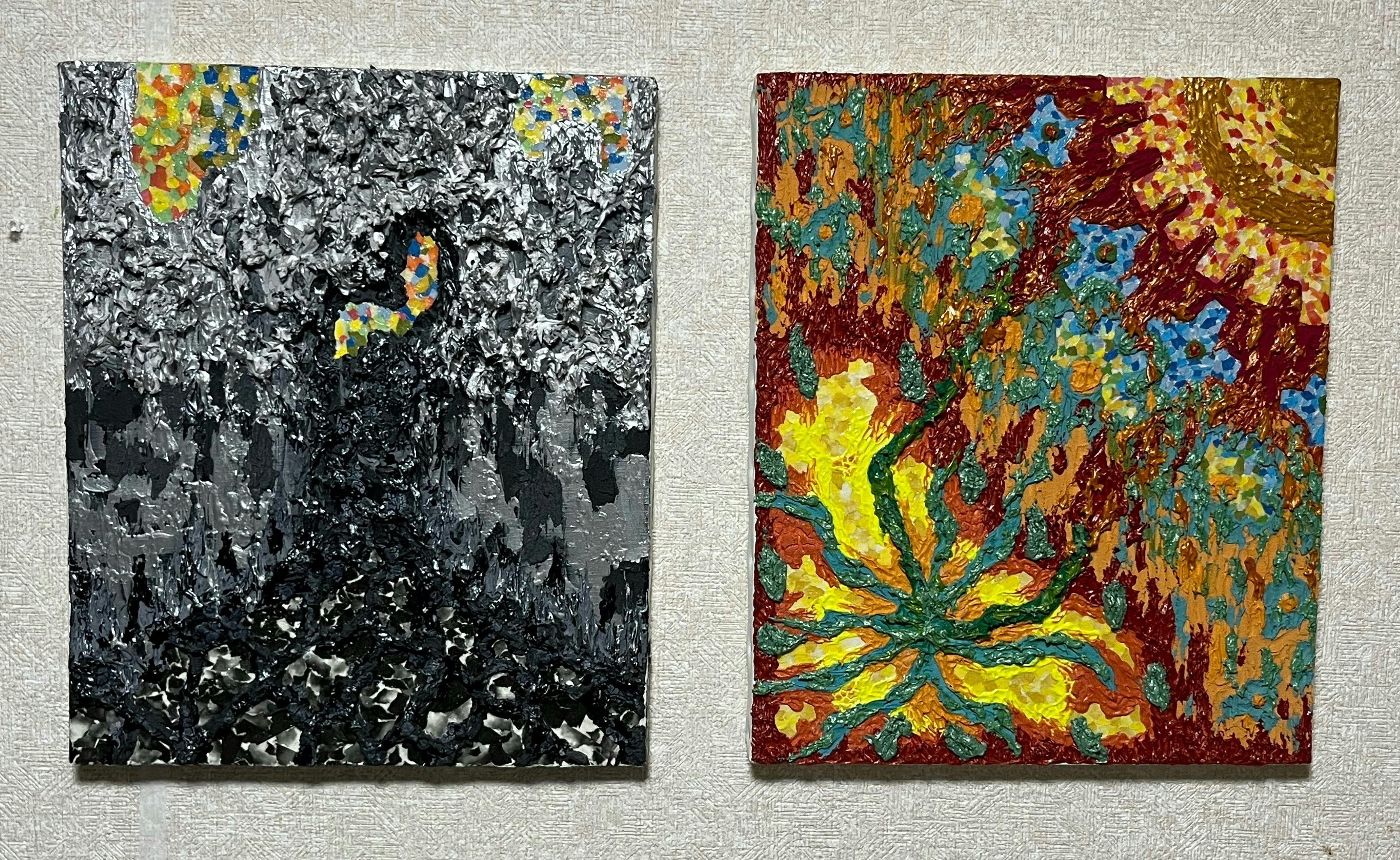 過去にいじめ、パワハラモラハラ、コロナウイルス感染するも救援物資なしなど人生に絶望していましたが、2022年11月にたまたま目に入ったインスタの広告がきっかけでテクスチャーアートされている方の個展に行きます。質感や色遣いに感動して2023年3月テクスチャーアートを始めることになります。