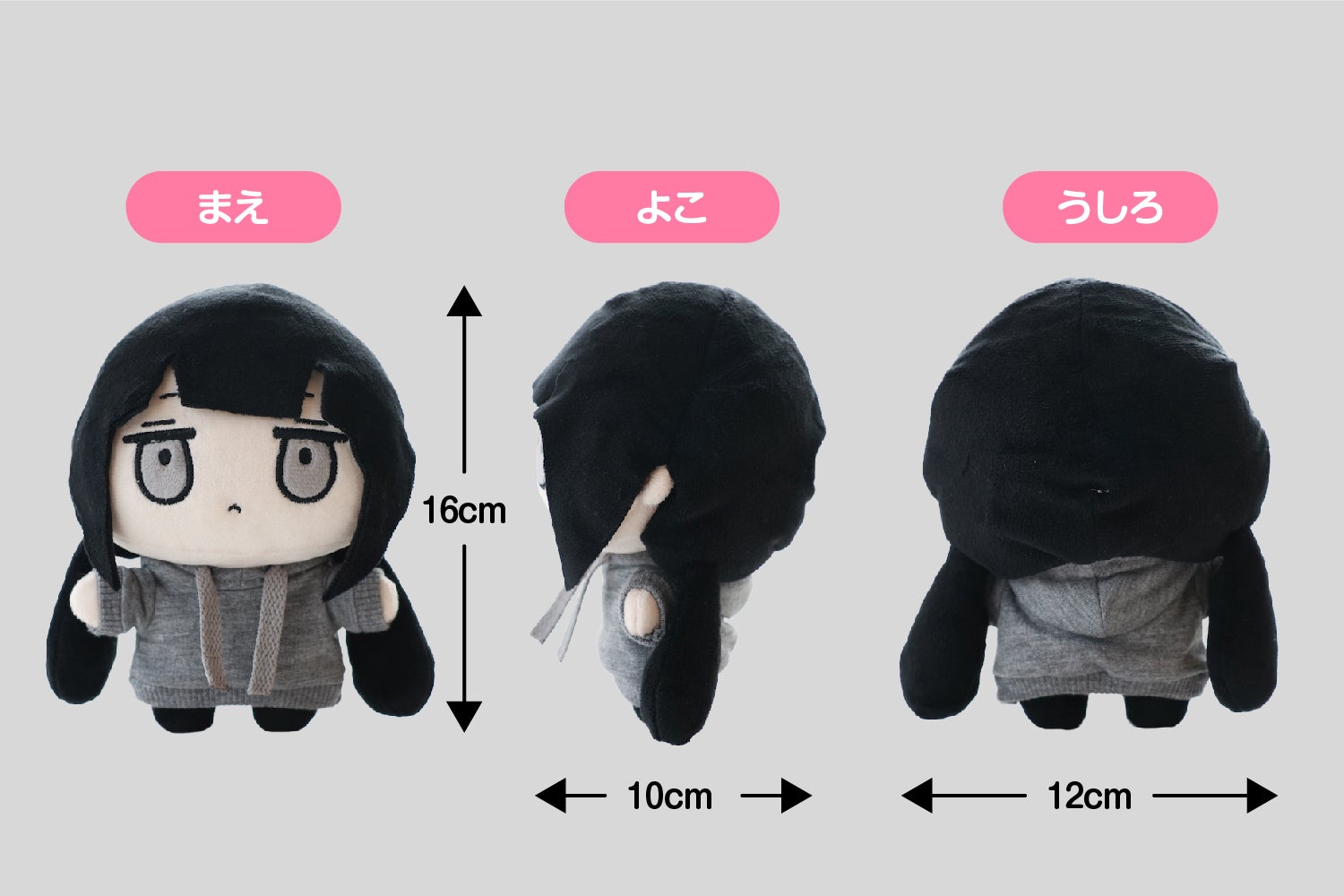 <手のりぬいぐるみ>縦16cm、横12cm、奥行き10cm