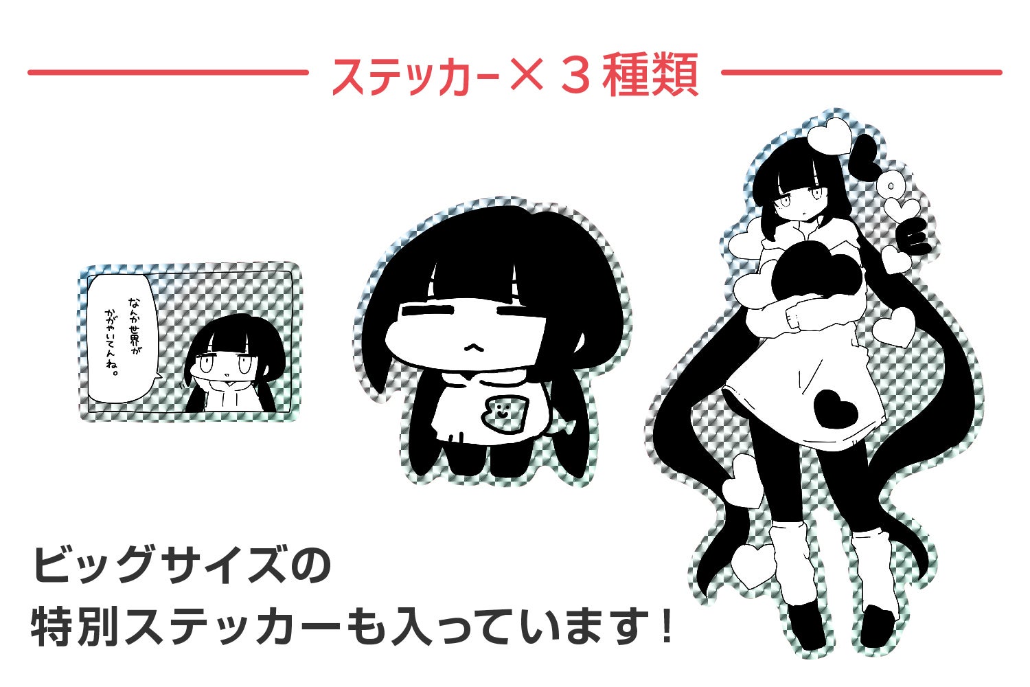 一番右のおさげちゃんは約19cm程のビッグなステッカーになる予定です!