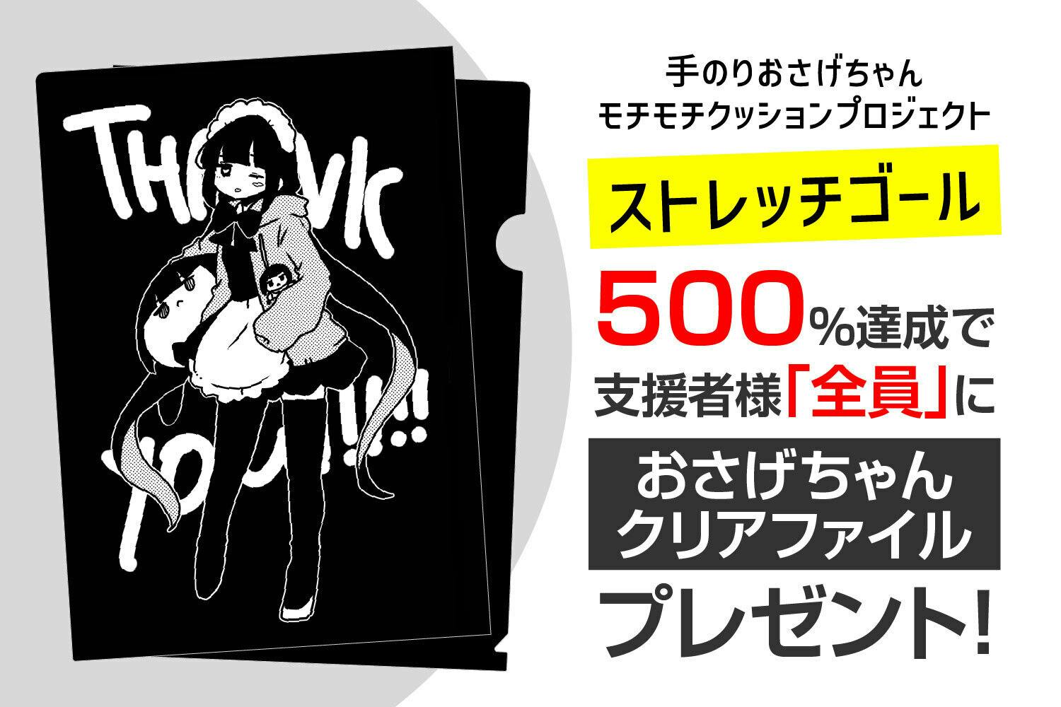 500%達成で「おさげちゃんクリアファイル」をご支援者様全員にプレゼント!