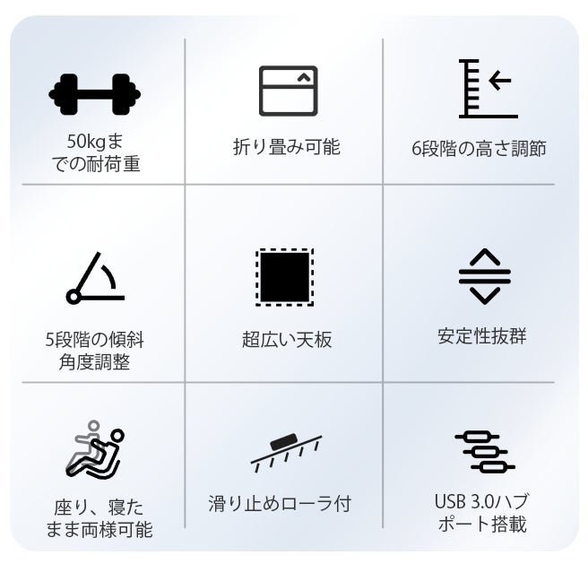 ④ 50kgまでの耐荷重、しっかりサポート。