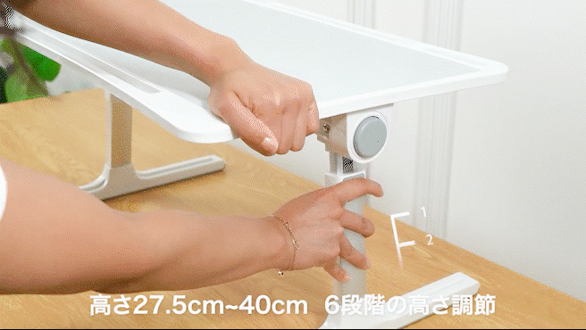 テーブル脚の高さは27.5 cm ~ 40 cmの間で自由に調節でき、6段階から選ぶことができます。大人でも子供でも快適さに合わせて調節できるので、とても使いやすいです。
