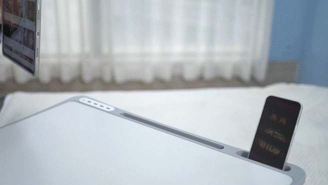 610×420mmの天板を採用し、パソコン、携帯電話、ノート、モバイルバッテリー、カップなどを同時に置くことができるので、マウスも通常通り使用でき、実用的です!