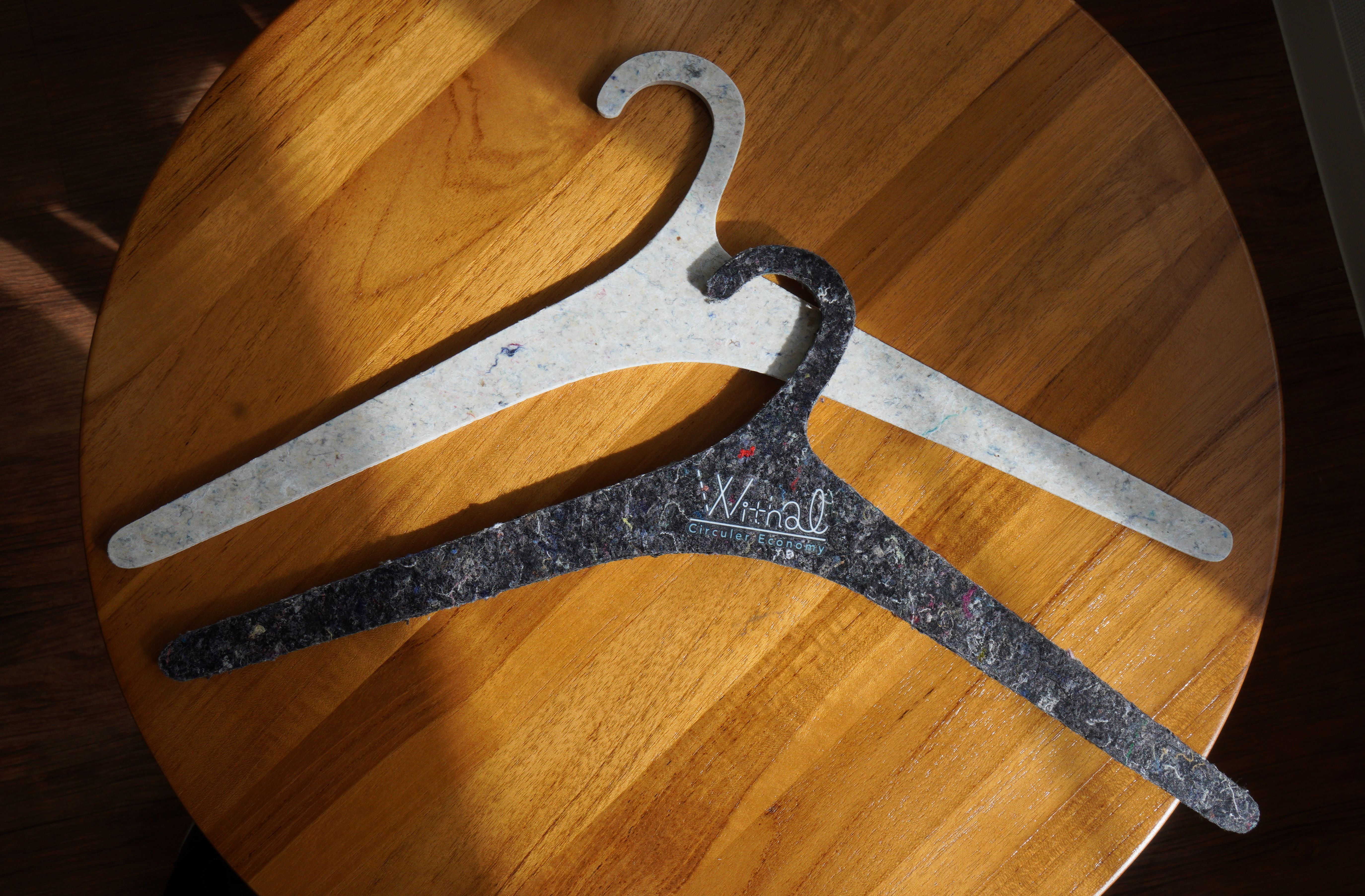 そのプロジェクトの一環で回収された衣類を反毛して特殊な繊維と混ぜて作られたボード「B.O.R Board of Recyclede」で製作されたハンガーです。