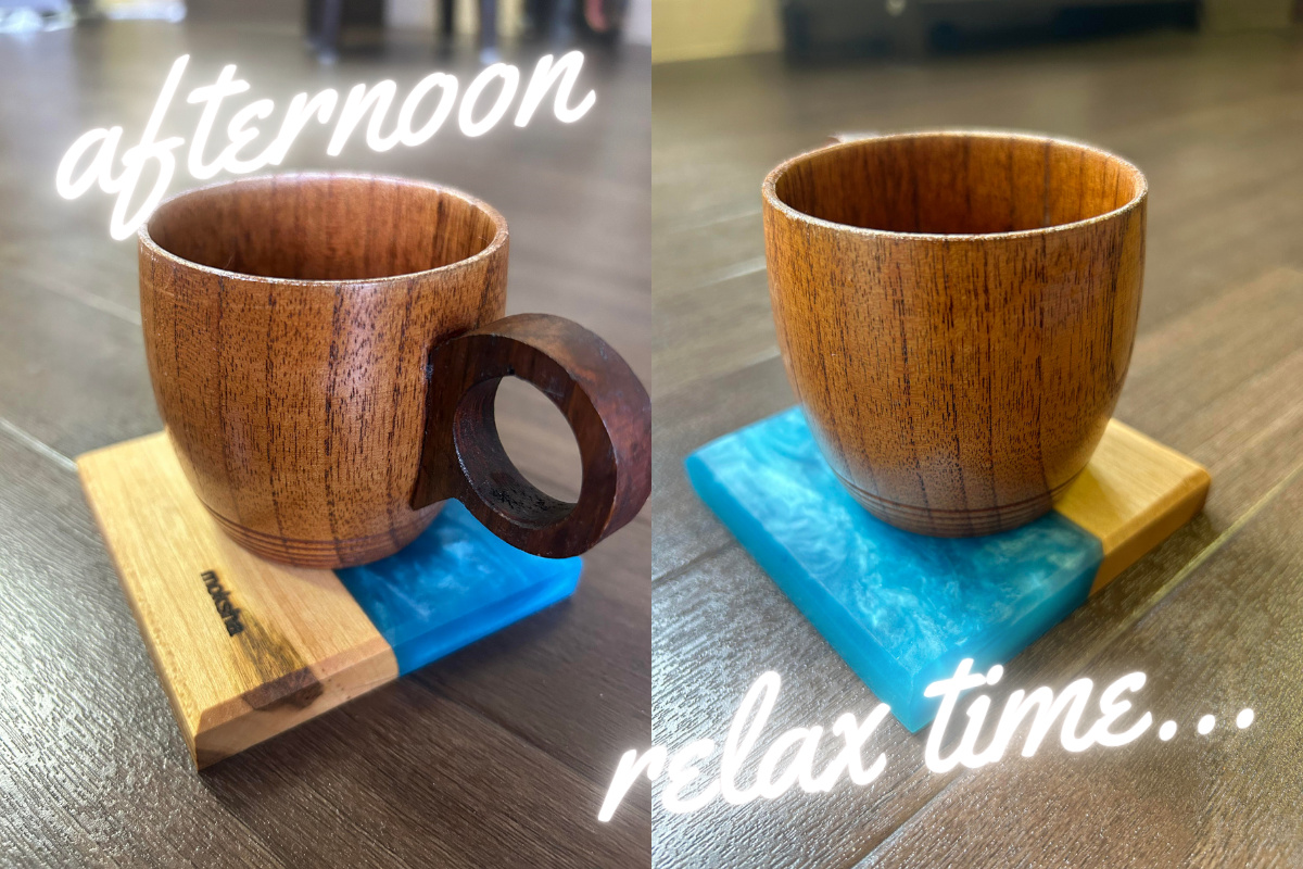 日常の「癒し」を感じていただくため、私は職人と共同でウッドレジンコースターを作成し、皆さまにお届けしたいと思いました。