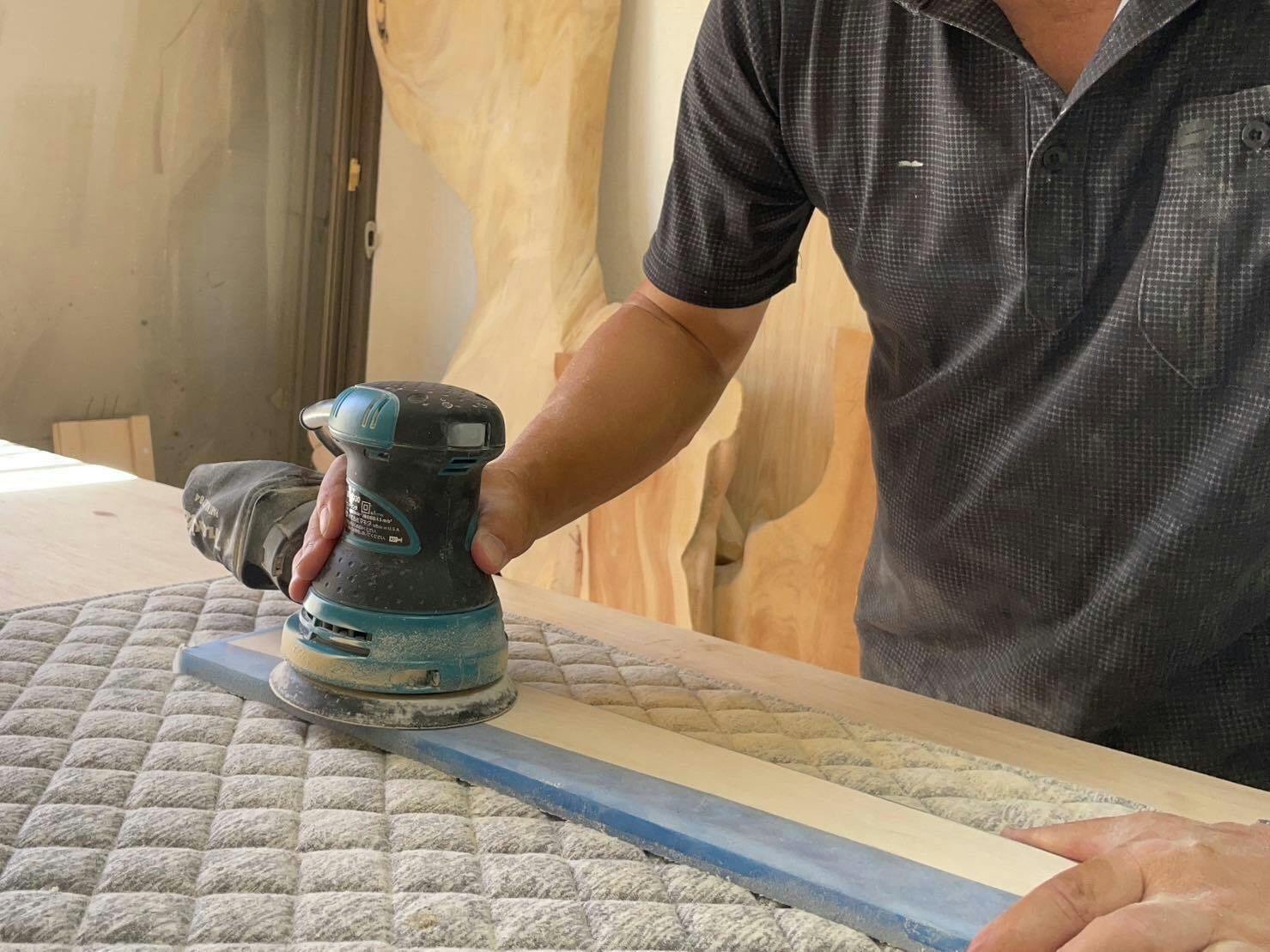 こちらのウッドレジンコースターはすべて、職人によるハンドメイドで作っています。機械が作るものは違い、画一的なものにならないよう、ひとつひとつが味のある作品になっています。