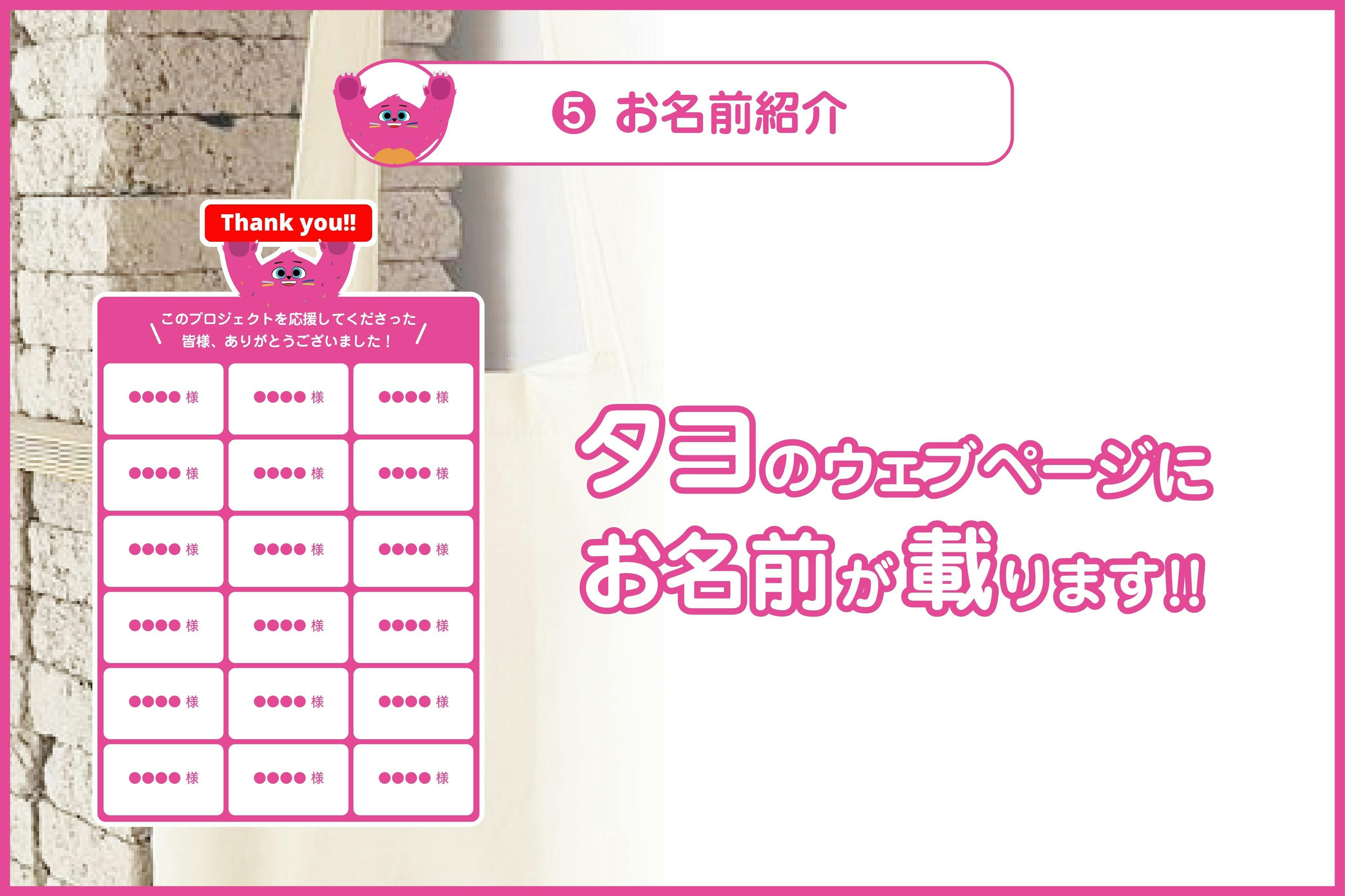 ・公式HP内<多様星からきたTAYO>ページ制作 ⇒2024年1月リターン発送&「お名前掲載」のリターンをお選び頂いた方は
