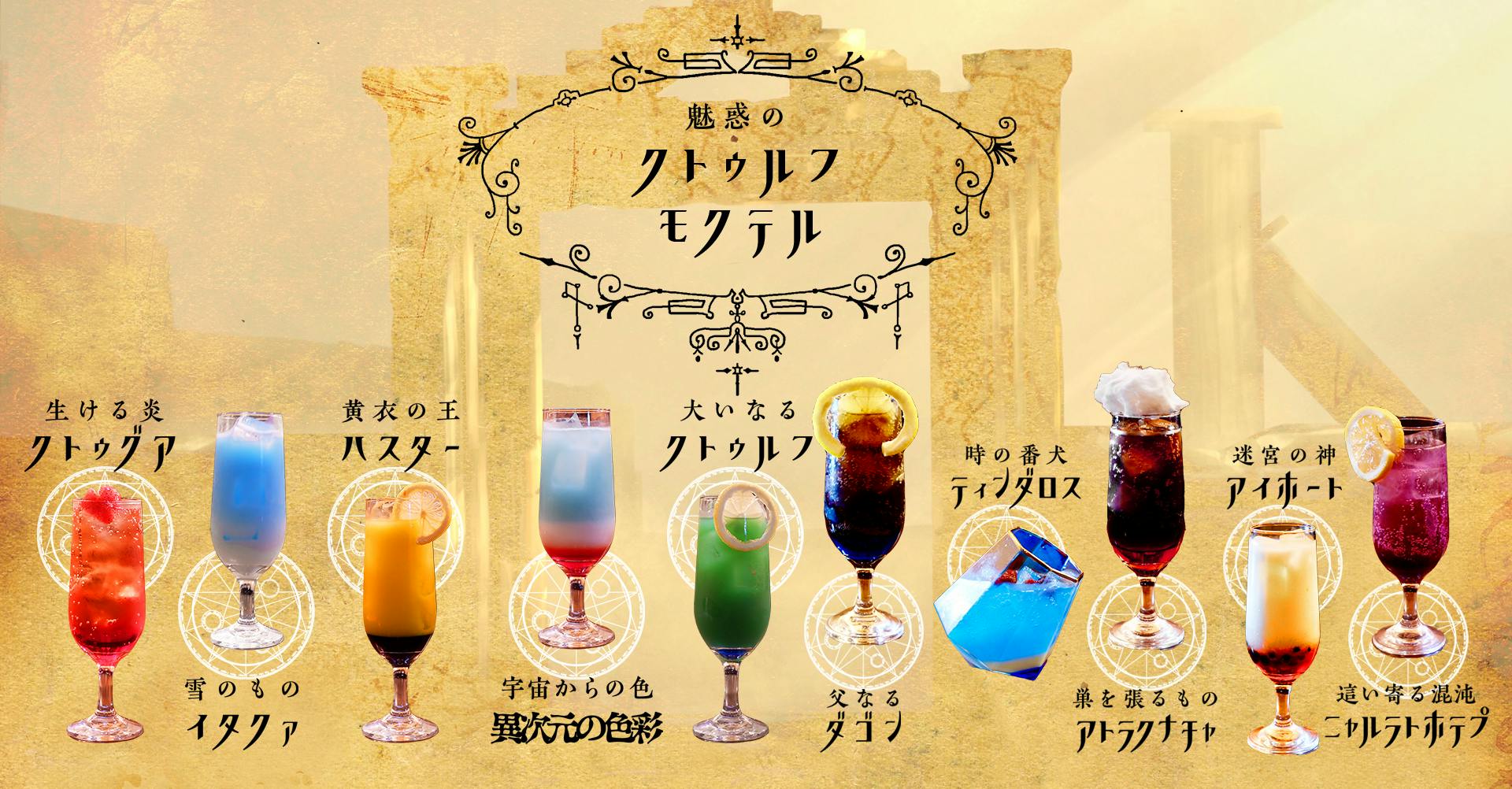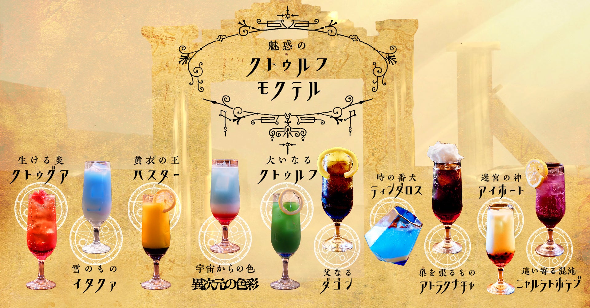 クトゥルフ神話の神格たちをモチーフにしたモクテル(ノンアルコールカクテル)を飲んで、宇宙的恐怖を味わうことができます。