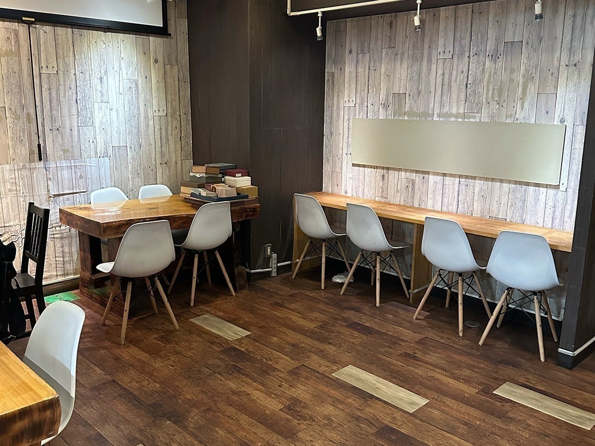 店内ではリアルマダミスだけではなく、TRPGのオフラインセッションを行ったり、備え付けのボードゲームで遊ぶこともできます。普段はオンラインで遊んでいる友人とのオフ会にもぜひお使いください。