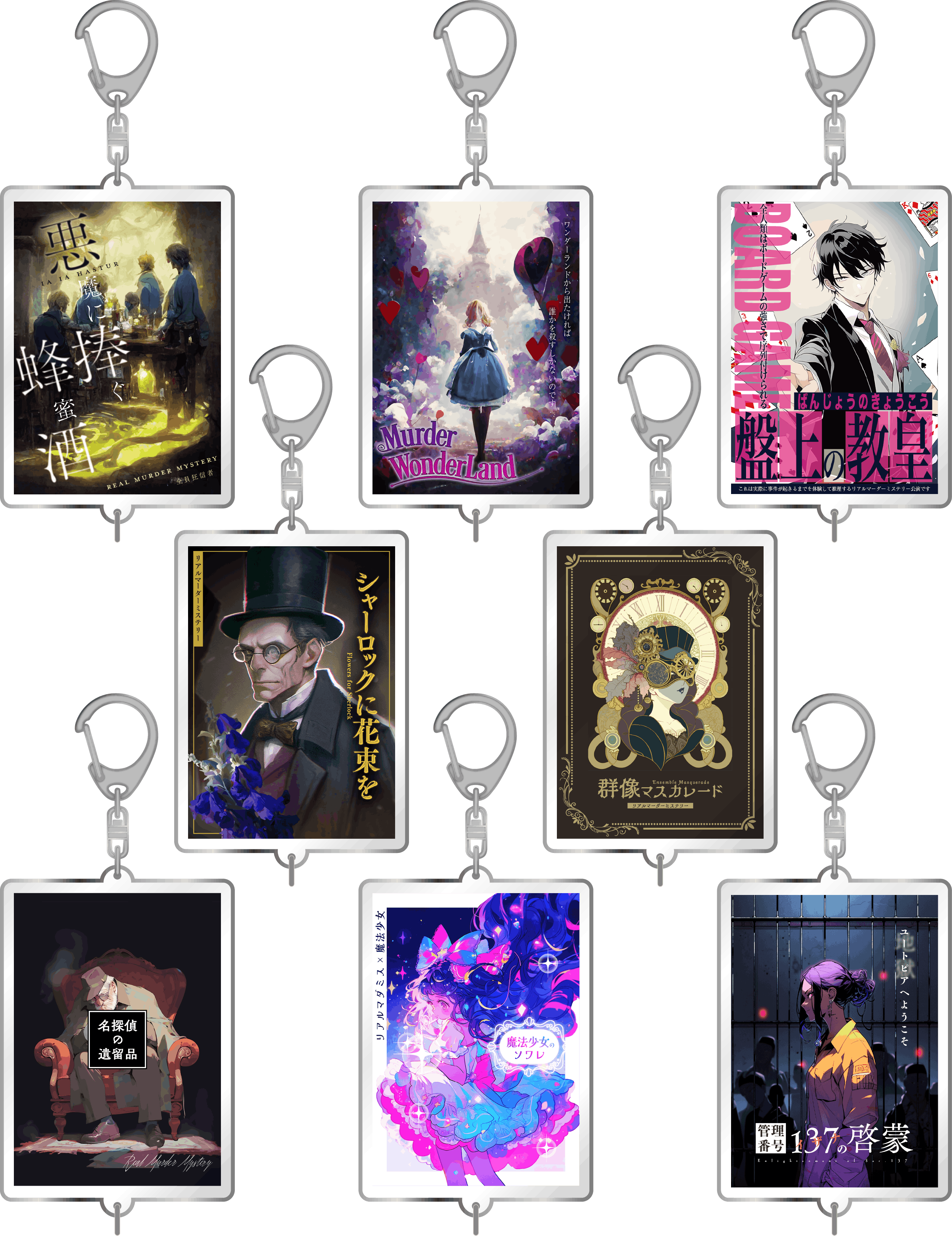 これまでに製作したリアルマダミスのキービジュアルを「つながるアクリルキーホルダー」にしました!