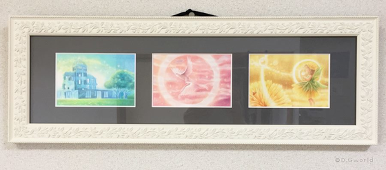 【国際平和美術展】クラウドファンディングも、いよいよ本日23:59で終了です!応援いただける方はそれまでにお願い致します。 国際平和美術展の展示作品は、原爆ドーム、鳩、たんぽぽの妖精さんの3枚を一つのフレームに入れて、タイトルは『平和を願う』にしました。 最初、タイトルは『平和を祈る』にしようかと思っていたのですが、昔から『祈るだけでは世界は変わらない』という言葉が頭の中にあって、『祈る』は違うなと思いました。 何となくですが、『願う』はそれを目指して行動する意味が含まれて居るような気がして『平和を願う』にしました。実際に、私も今までいろんな事を願って行動して来たからこそ、沢山の事を実現したり、夢を叶えてこれたような気がします。 実は、見えにくいですがそれぞれ3枚の絵には10個以上の『□』と『+』を描いています。そして、どこかに『叶』という文字を入れています(ちょっと画像では見えないかも)これは願っている事を10回、口(言葉)にしたら叶うみたいなことをイメージしています。 あと、これは私の個人的なイメージなのですが、『□』は人を、『+』は思いを表していて、それらが絵の中に漂い、出会う事で『叶』という形になるようイメージしています。これは時の流れの中で沢山の人の思いが漂う中、それぞれの思いが重なった時に『叶』う、みたいなイメージをしています。 私のテーマは『手のひらサイズのやさしさを』私が作品をハガキサイズにしているのは、私の手からあなたの手へ、あなたの手から大切な人の手へ贈ってほしいという思いを込めています。また、作品が小さいので机の小脇などにも飾りやすく、絵を身近に置く事で作品が見る人の気持ちに寄り添うようにとの思いもあります。 私は1人でも多くの人に優しい気持ちを届けて、まぁるい世界をもっとまるくしたい。世の中では争いが絶えませんが、トゲトゲを少しでも和らげられるようになりたい。 ちっぽけな私の壮大な願いが生きてるうちに少しずつでも叶っていく事を願って。 * 展示情報 * 国内展 ■広島・JMSアステールプラザ 1F 市民ギャラリー 会期*2018年6月26日(火)〜6月29日(金) 10:00~18:00 ※初日は13:00〜 入場無料 海外展 ■スイス・ジュネーブ・国際連合欧州本部 会期*2018年9月12日(水)〜9月17日(月)、2018年9月19日(水)〜9月24日(月)