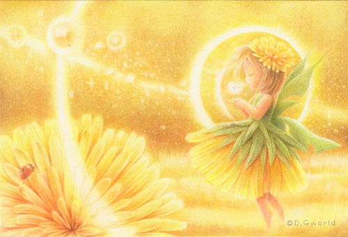 国際平和美術展で広島とスイスで展示する3作品、3枚目のご紹介はたんぽぽの妖精さんです。