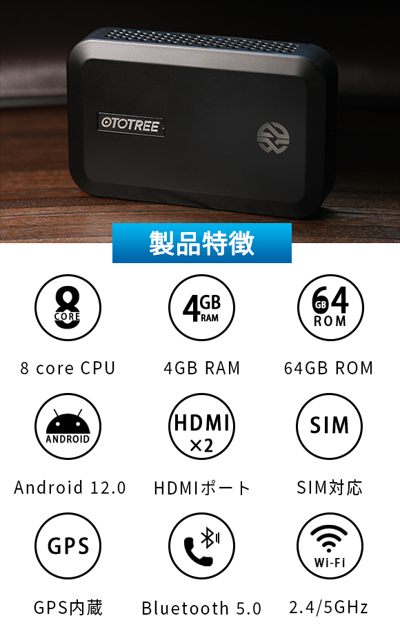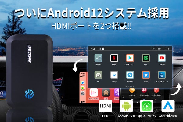 「OTOTREE Pro」は最新Android12.0を搭載し、以前のAndroid10.0より、CPUロードにかかる時間をかなり短縮し、車のUSBポートに差し込むだけで簡単にカーナビをAndroidスマホ化!