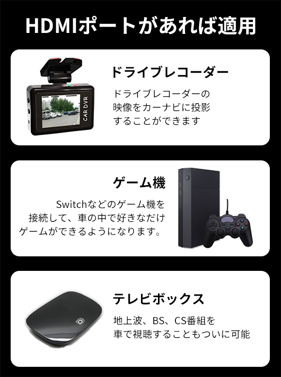 原理的には、HDMIが付いているデバイスはすべてカーナビに直接画面を投写できます。車の中でゲームをするのはもはや夢ではありません!