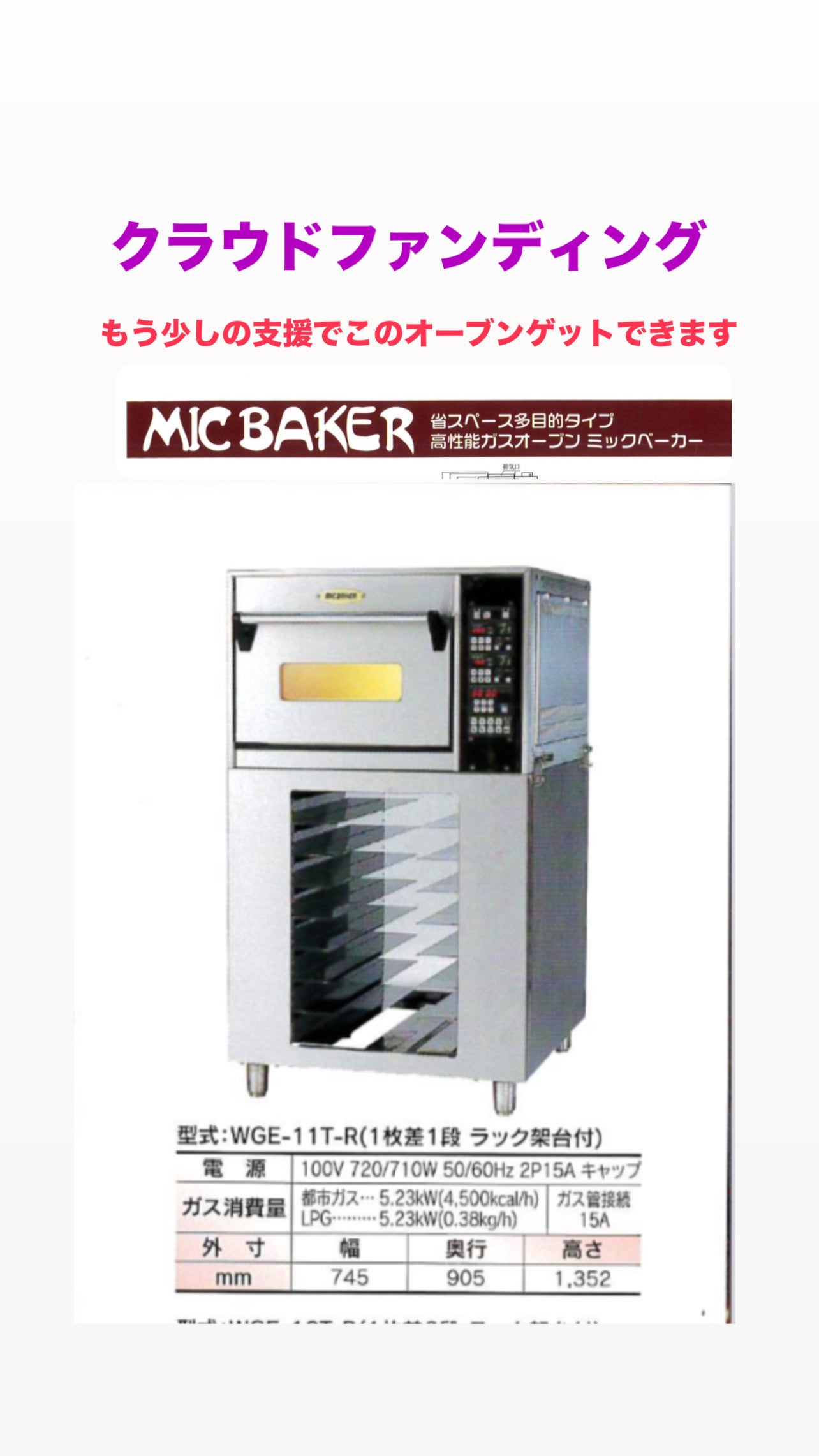 サワードウを焼く主のオーブンをミックさんに決め業者さんに9月注文します。もうちょいでオーブンゲットの支援金が集まります。このオーブンで焼いたサワードウを支援の方々にお届けできる日も目にみえます