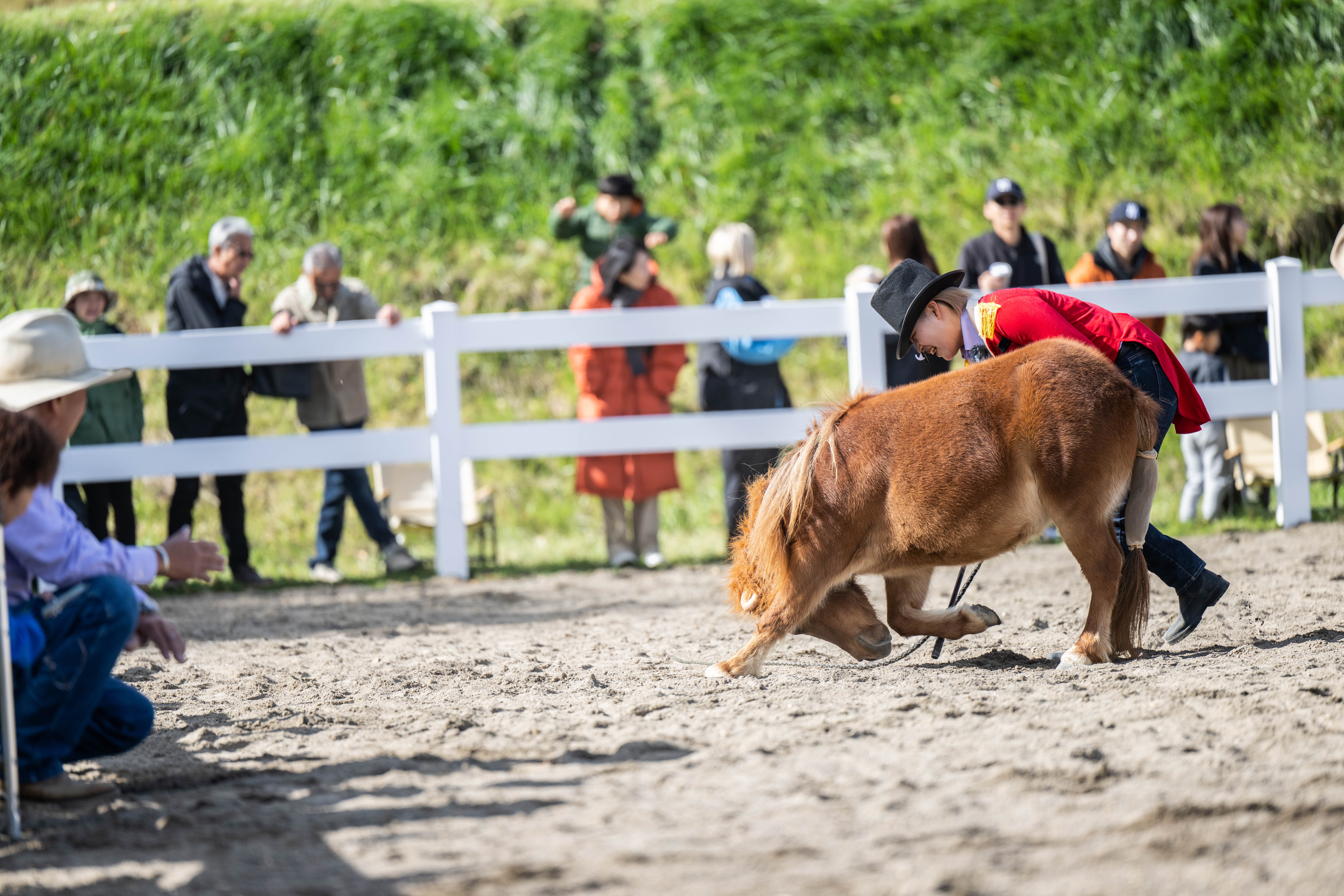 ホースショーでは、ポニーがジャンプを披露、クオーターホースがリードロープ(手綱)なしのパフォーマンスやゲームが行われ、参加者や観客の皆様に楽しんでいただけました。