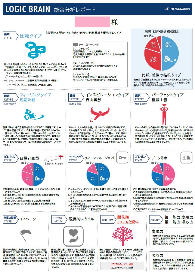 このロジック・ブレイン社のデータベースは、100万人以上のデータからパターンを統計化したもので、私が学んできた数々のパーソナル分析の手法のなかで、最も信頼がおけるものです。