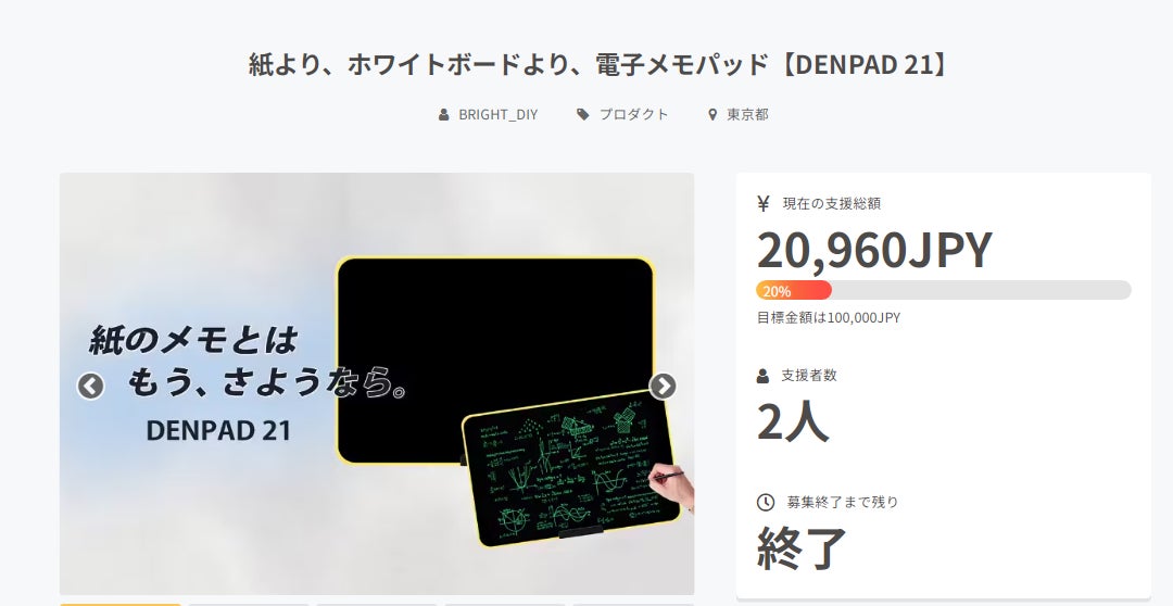 皆様にご満足いただけるリターンをお届けできるよう、全力で取り組んで参りますので引き続き、「紙より、ホワイトボードより、電子メモパッド【DENPAD 21】」をよろしくお願い致します。