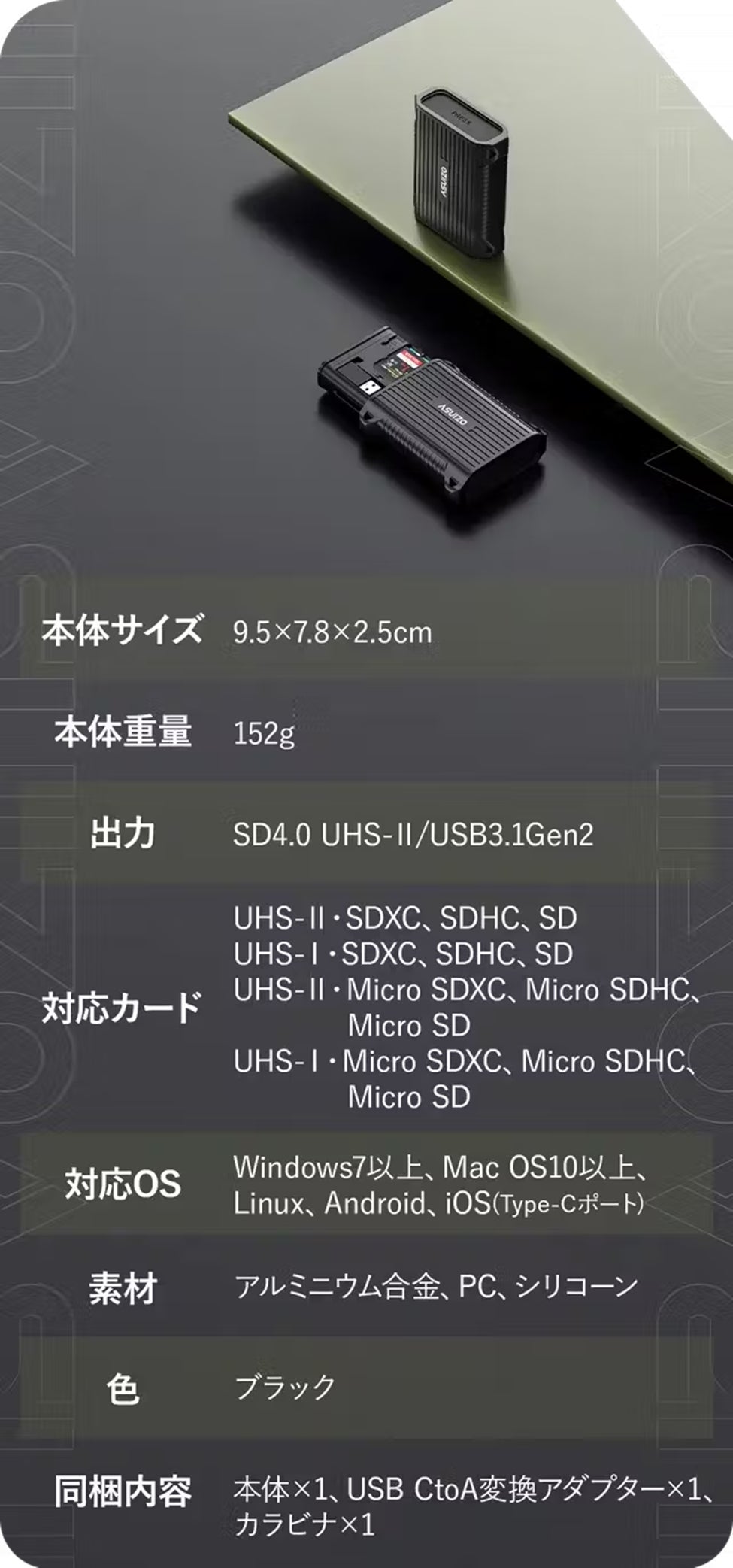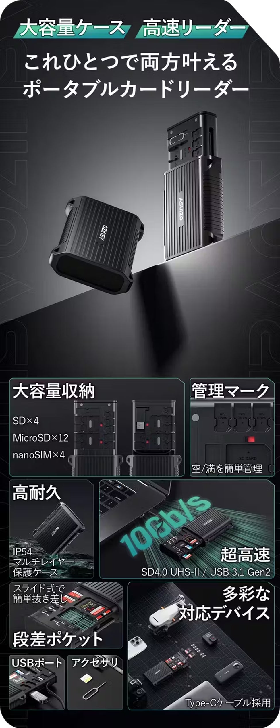 SD&MicroSDカードリーダー、USBポート搭載!3種のポート&複数同時読み込みで効率UP SD4.0 UHS-II、USB 3.1 Gen2対応!