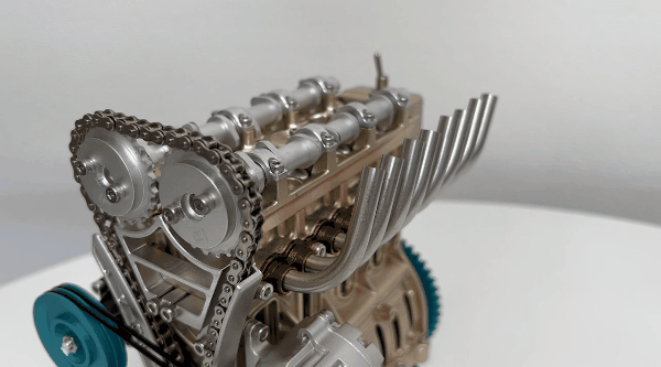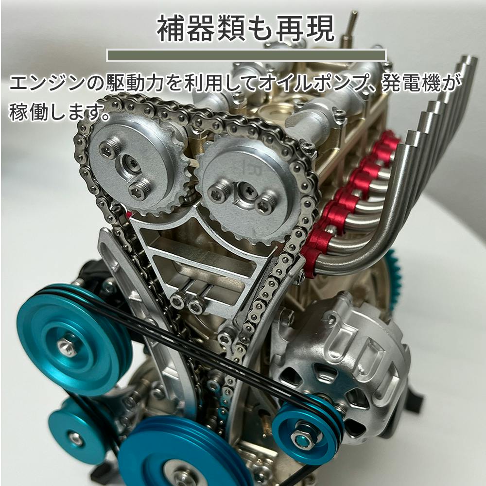 2023/12/22 19:46サポーターの皆様。この度4気筒のエンジン模型をプロジェクトいたしました。4気筒DOHCエンジン模型ですが、簡単な模型ではなく、4時間以上かけて金属パーツを組み当てていただきます。完成後はバッテリー内蔵でセルモーターを回転させ、エンジン全体を稼働させます。目に見えている部分だけが稼働するのではなく、組んでしまうと見えなくなる部分まで稼働します。クランクシャフトからタイミングチェーンでカムを回し、4ストロークエンジンの原理、動きが理解できるほど精巧に動作します。見た目も金属の構造物といった感じで、作って楽しみ、動かして楽しみ、飾って嬉しいエンジン模型です。 もっと見る