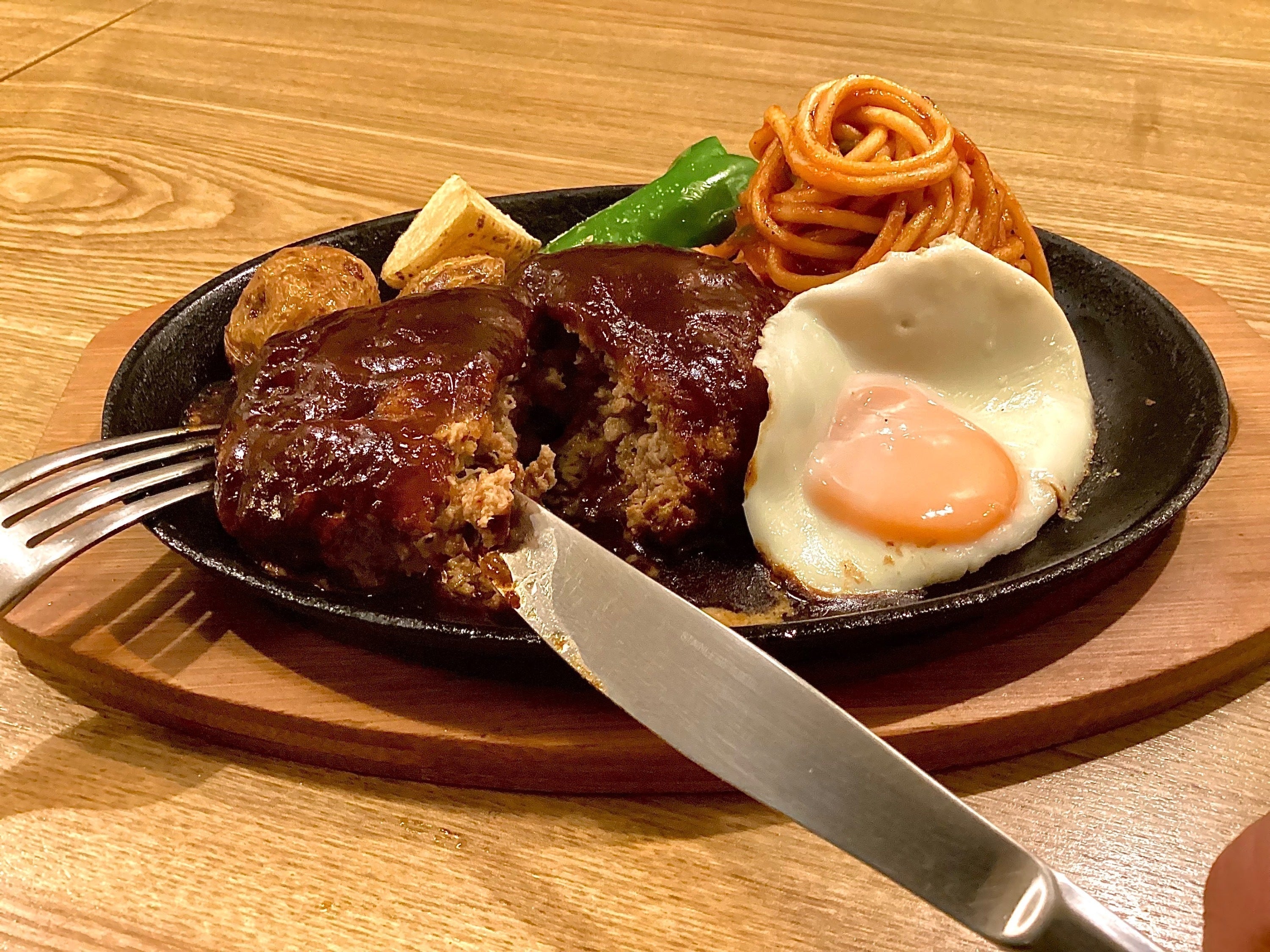 そこに、自家製のデミグラスソースをかけることで、ミンチの肉本来の旨味を際立たせるのハンバーグが完成します。