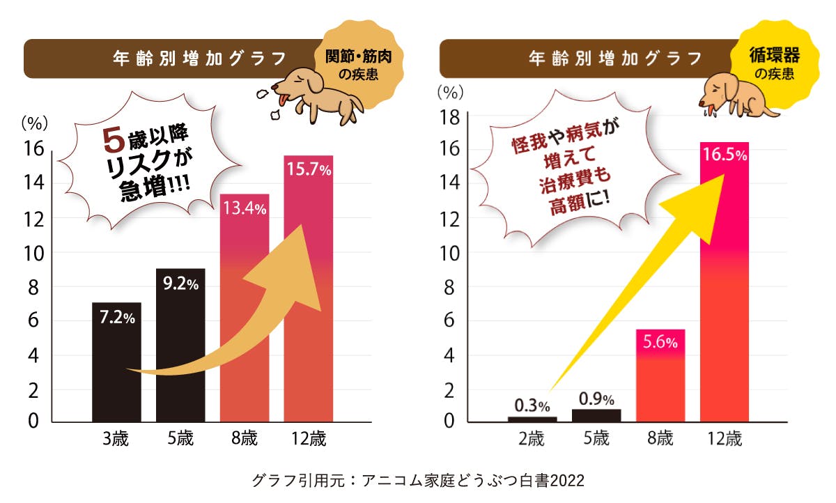 犬種によっても異なりますが犬は7歳ごろからシニア期と言われ老化による症状や疾患が増えてきます。