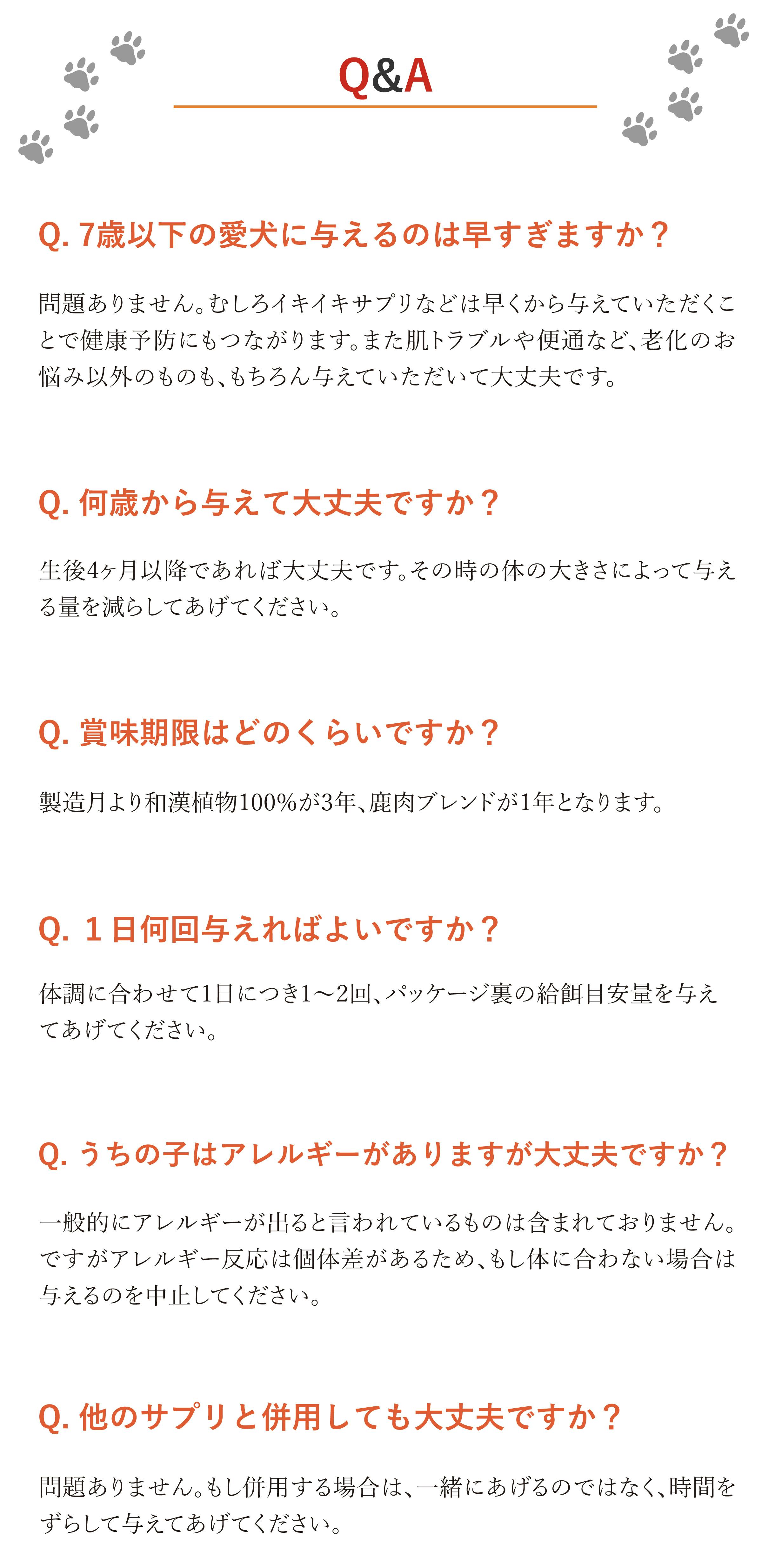 ◆ 原材料名:鹿肉、各サプリの「配合成分」に記載の内容