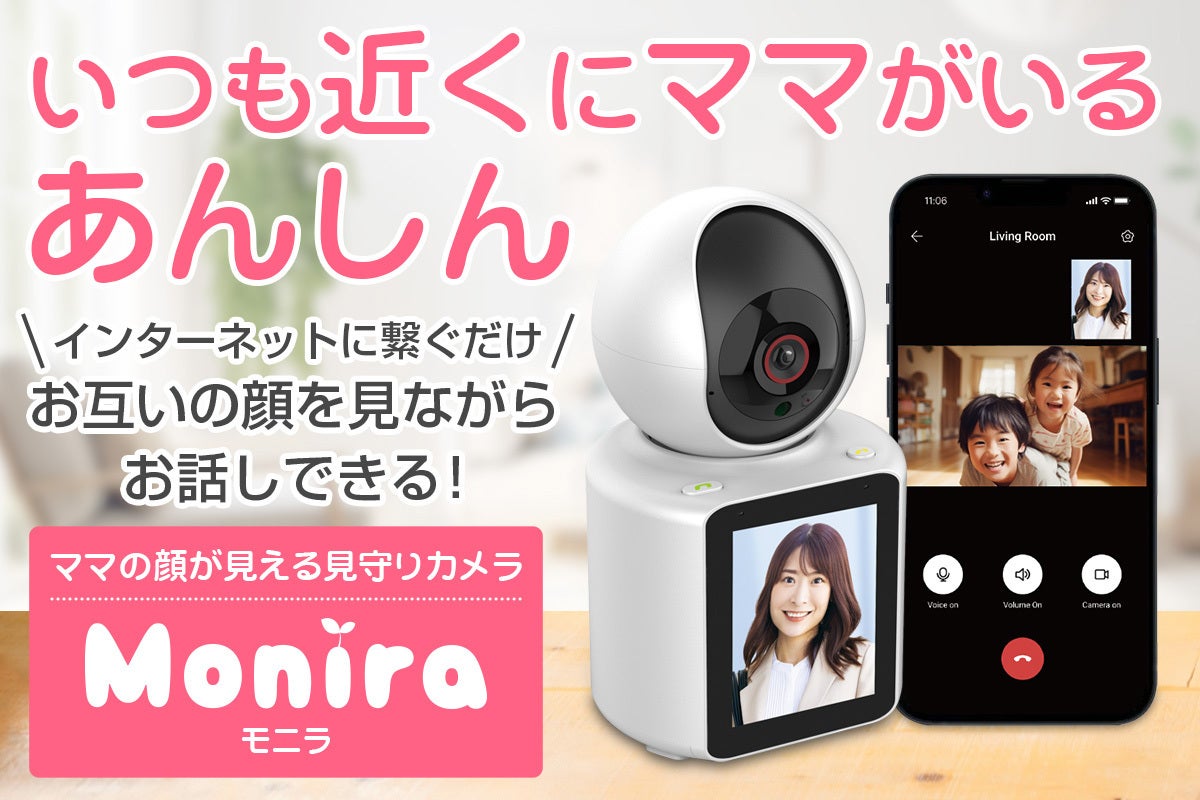 Moniraは、離れていても、お互いがより近くにいる事を確認しあえる、本当の意味での見守りカメラです。