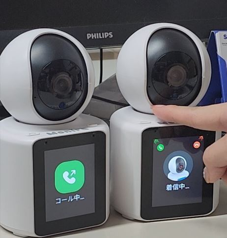 この液晶ディスプレイ付きの見守りカメラは、高解像度・高音質のビデオ通話がとても簡単に実現できます。