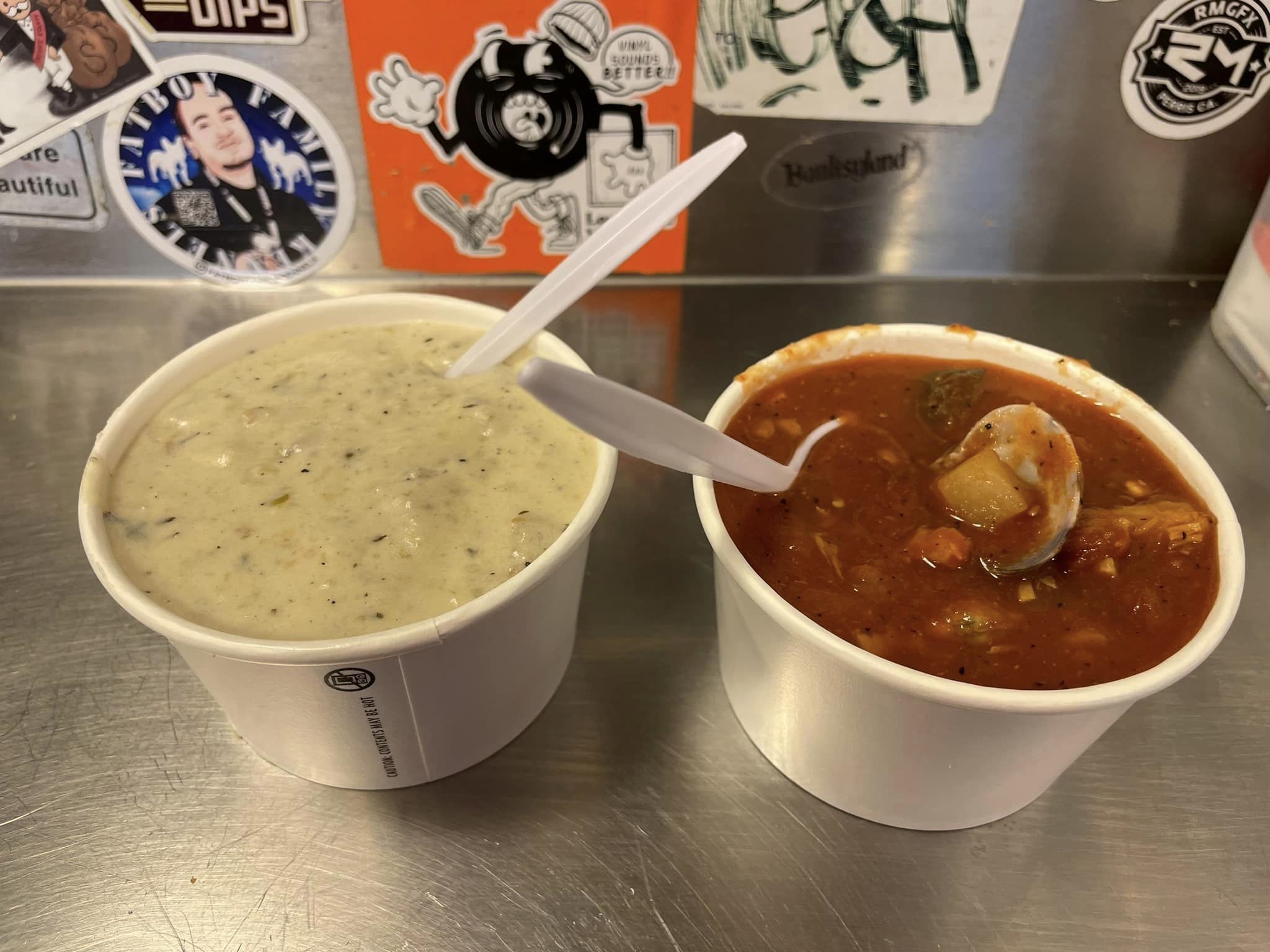 写真はシアトルのフィッシュマーケットで食べたクラムチャウダーと、シグネチャースープ(魚介のビスクみたいな感じでした)。なんだかんだでこれが一番安く、一番美味しかったかも。