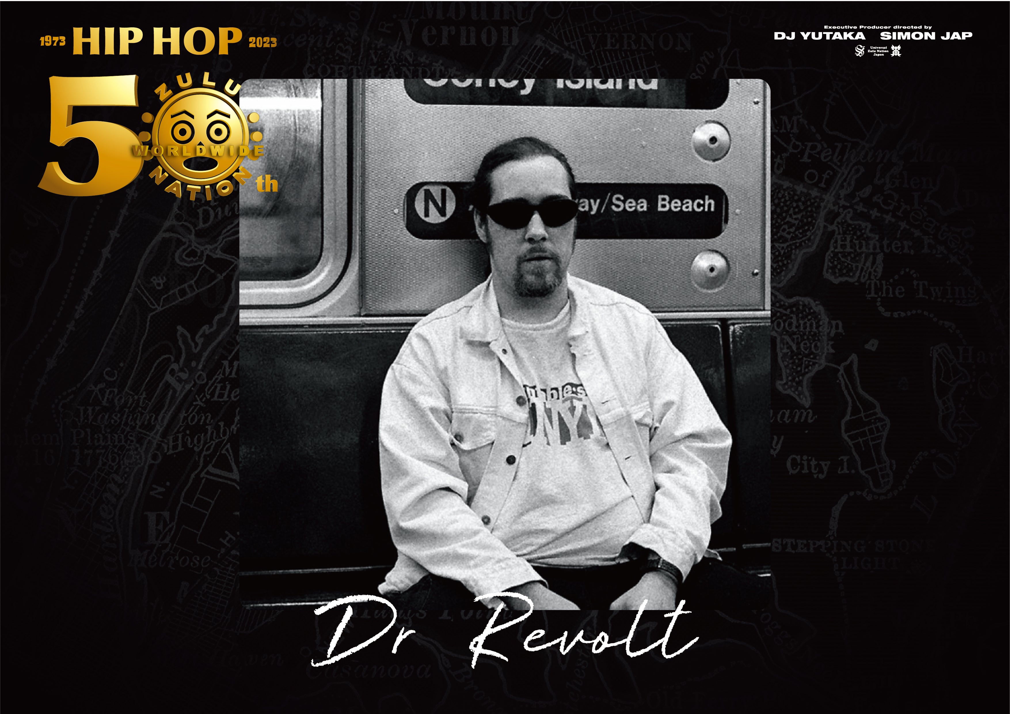 我々世代にとっては一生に一度しか祝えないであろうこの重要な節目に、"HIP HOP"の名付け親とも言われるアフリカ・バンバータ率いるZULU NATIONの唯一の日本人メンバーであり、日本のヒップホップを語る上で最も重要な最年長のドンである