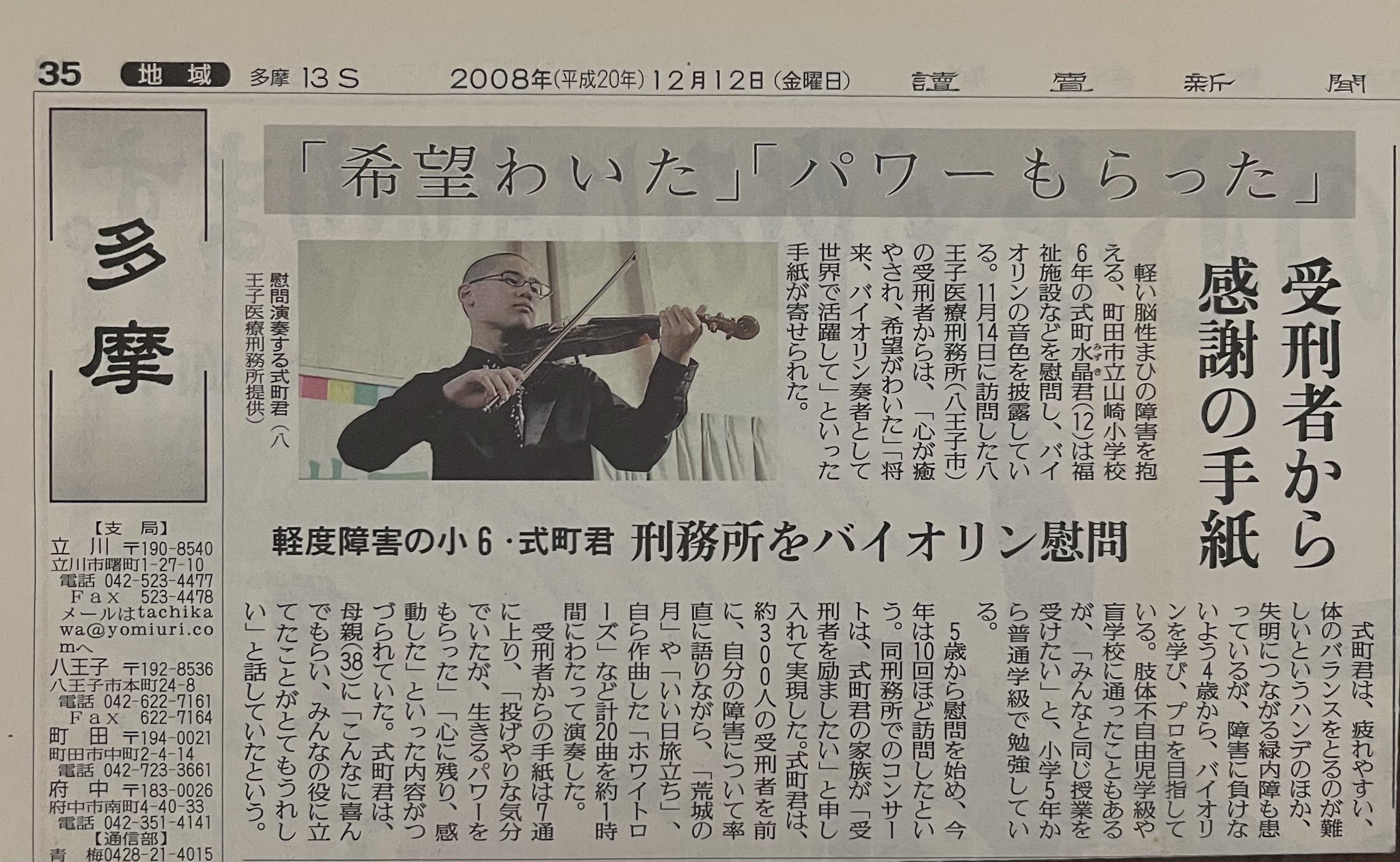2008年12月12日の読売新聞に掲載いただきました