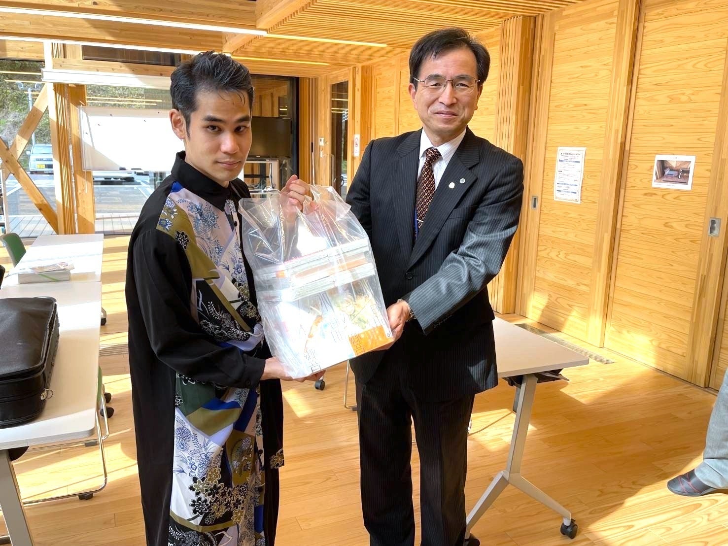 2021年9月 小田原市長と。市内の全小中学校へマンガと書籍を寄贈。
