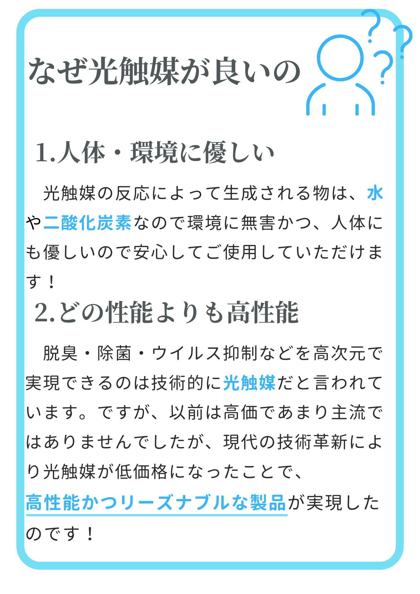 これは光触媒として働く酸化チタンの粒子サイズ、7ナノメートルを指しています。この微細な粒子サイズが、除菌と脱臭の効率を高める要因となります。この「7nm」という数字は、私たちが目指す高い「空気品質」と「生活品質の向上」を象徴しています。