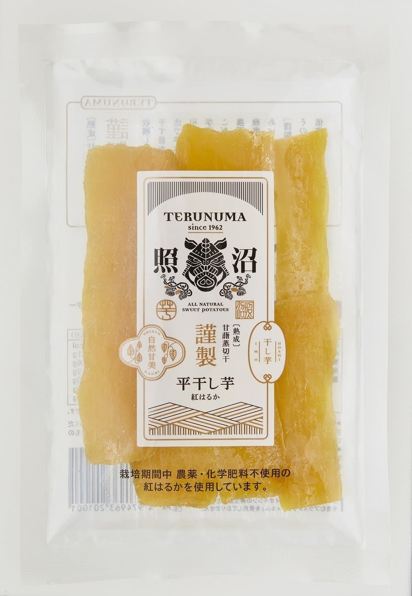 大き目の薩摩芋をスライスした「平干し芋」は、伝統的に生産されてきた干し芋で、自然な甘さに加え、しっとりとした食感が特徴です。特に暑い時期は、冷蔵庫で冷やすと、さらにしっとりとした味わいを楽しめます。また、寒い時期には、ストーブの上やオーブントースターで加熱していただくと、更に甘味が増し、外側のカリッとした食感と内側のとろーりとした食感でなんとも言えない贅沢な味わいとなります。