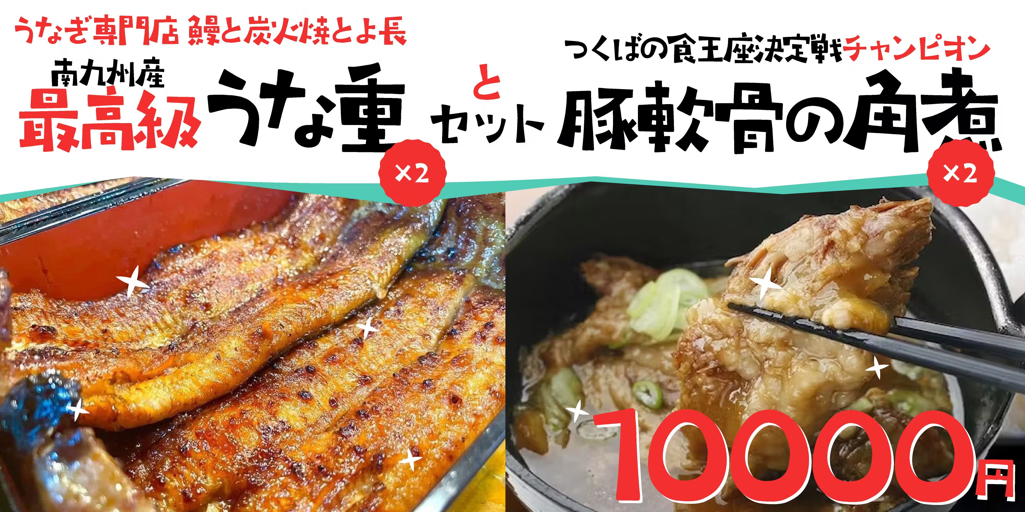 南九州産の最高級鰻を丸々一本鰻を使い、創業昭和二十七年からのタレと備長炭火で焼き上げた最高級うな重。もちろんお米、は地元つくば自慢の常陸小田米を使用。また、つくばの食王座決定戦チャンピオンに輝いた豚軟骨の角煮をセットにした、ここだけしか味わえない贅沢なセット商品です。