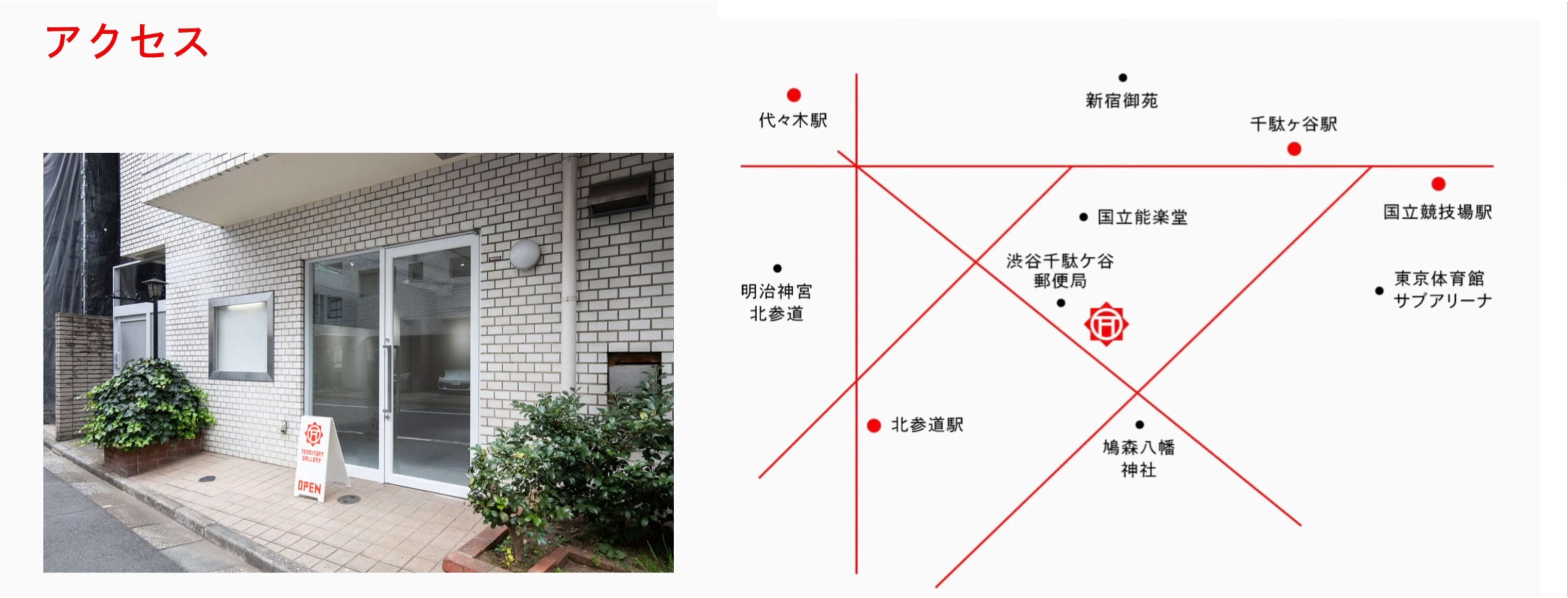 JR総武線「千駄ヶ谷駅」徒歩5分東京メトロ副都心線「北参道駅」2番出口 徒歩5分都営大江戸線「国立競技場駅」A4出口 徒歩5分JR山手線・中央・総武線「代々木駅」西口 徒歩9分